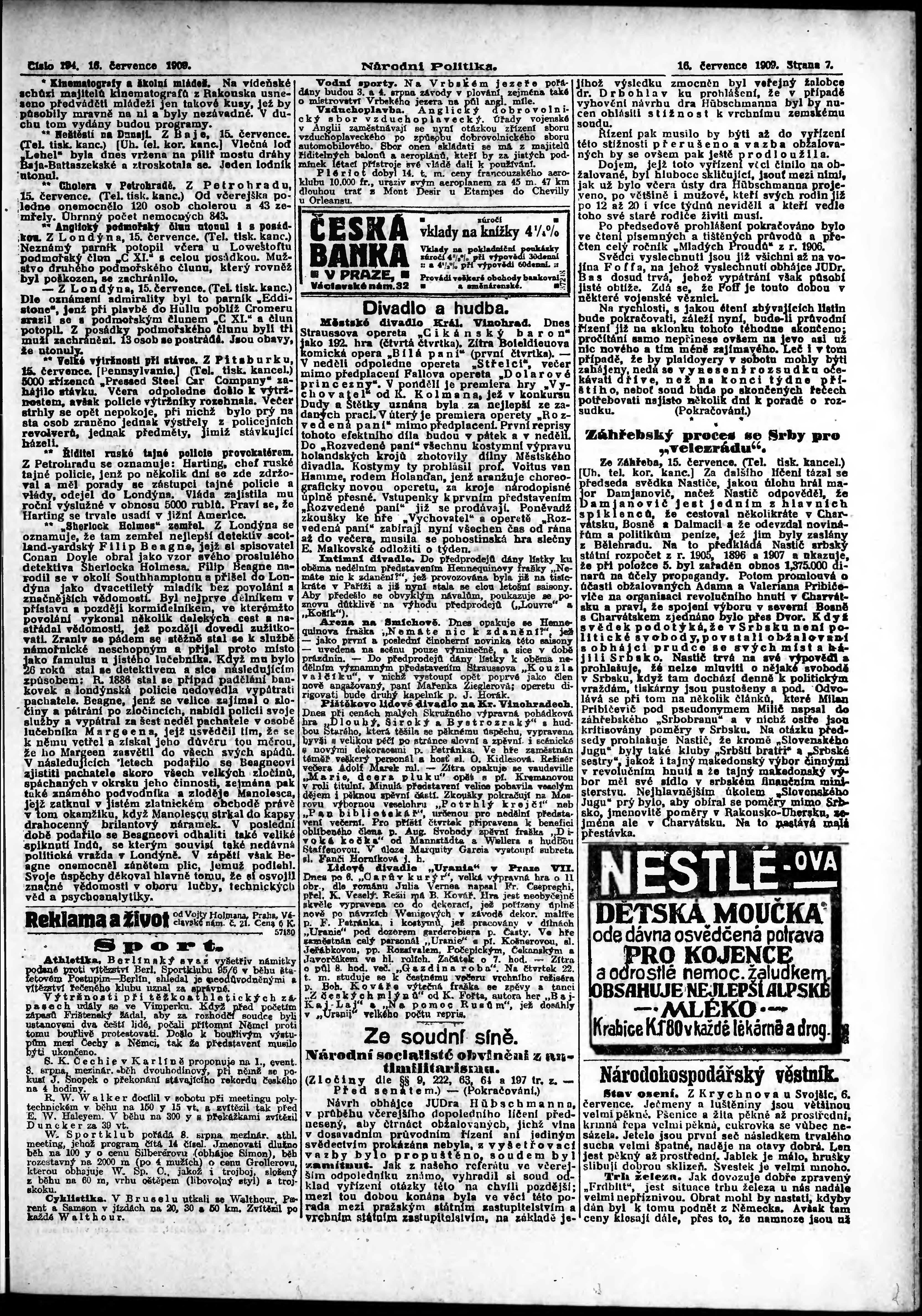 * Datum vydání výtisku: 16.7.1909 Číslo výtisku: 194