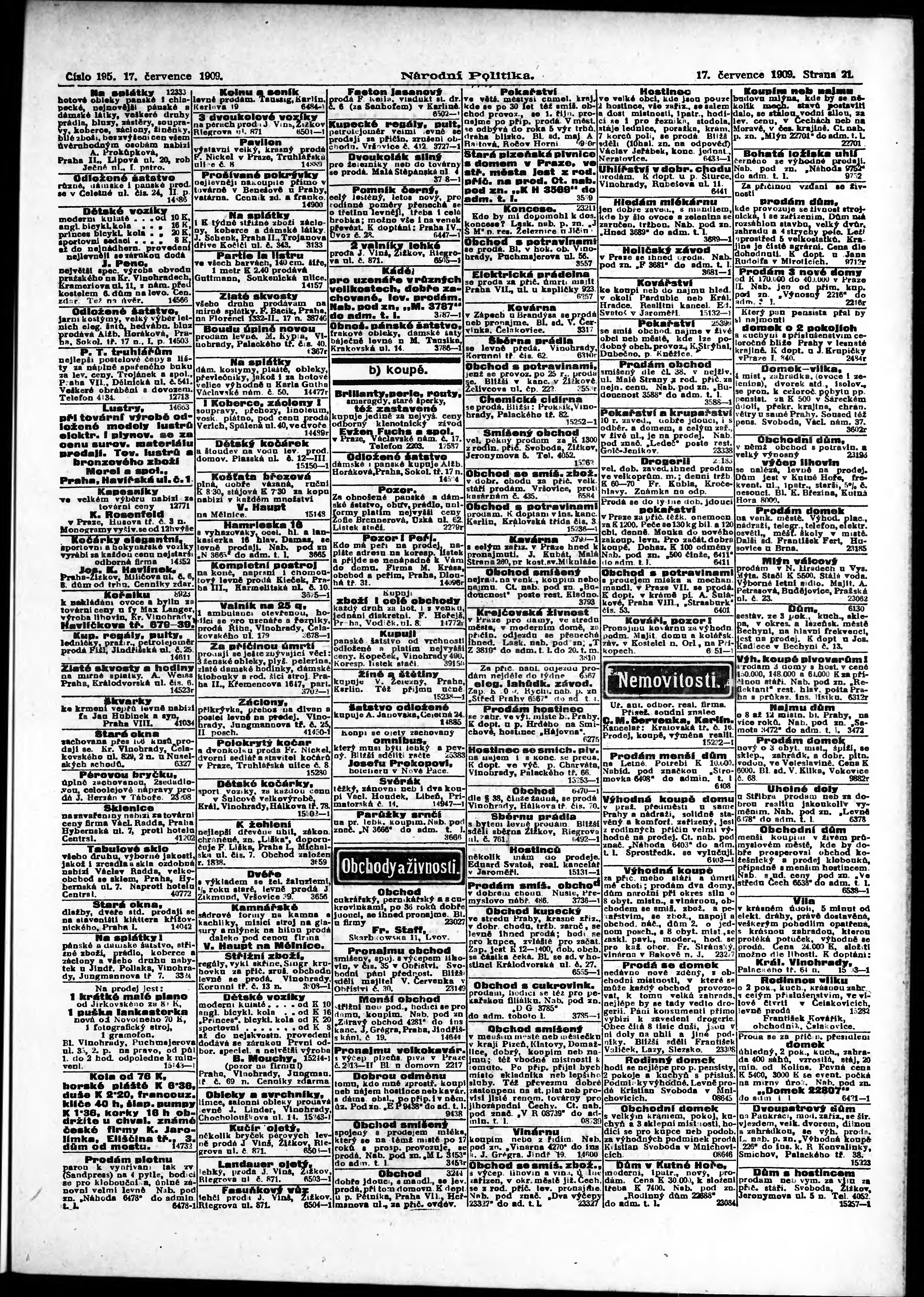 * Datum vydání výtisku: 17.7.1909 Číslo výtisku: 195