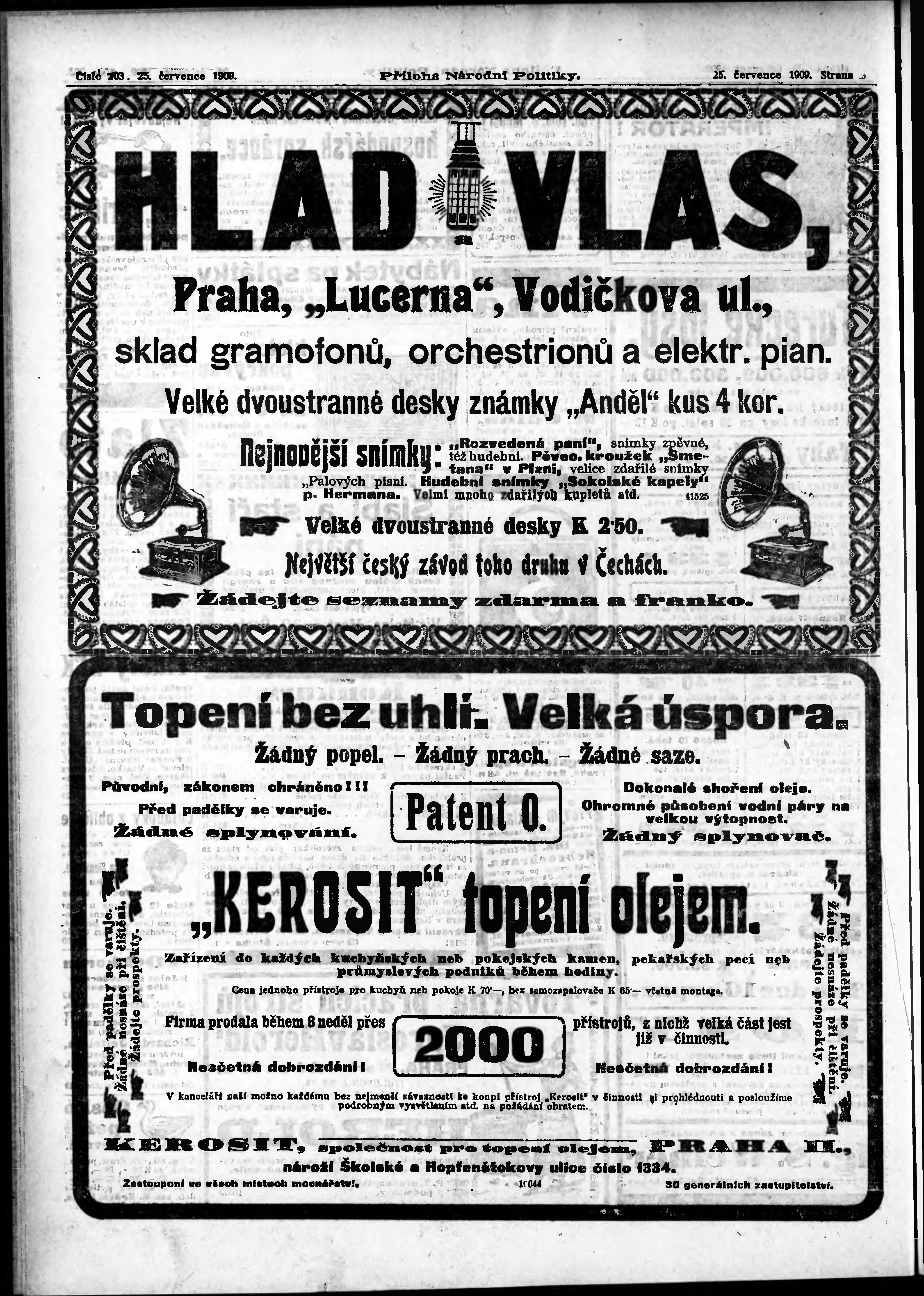 * Datum vydání výtisku: 25.7.1909 Číslo výtisku: 203 Typ výtisku: příloha
