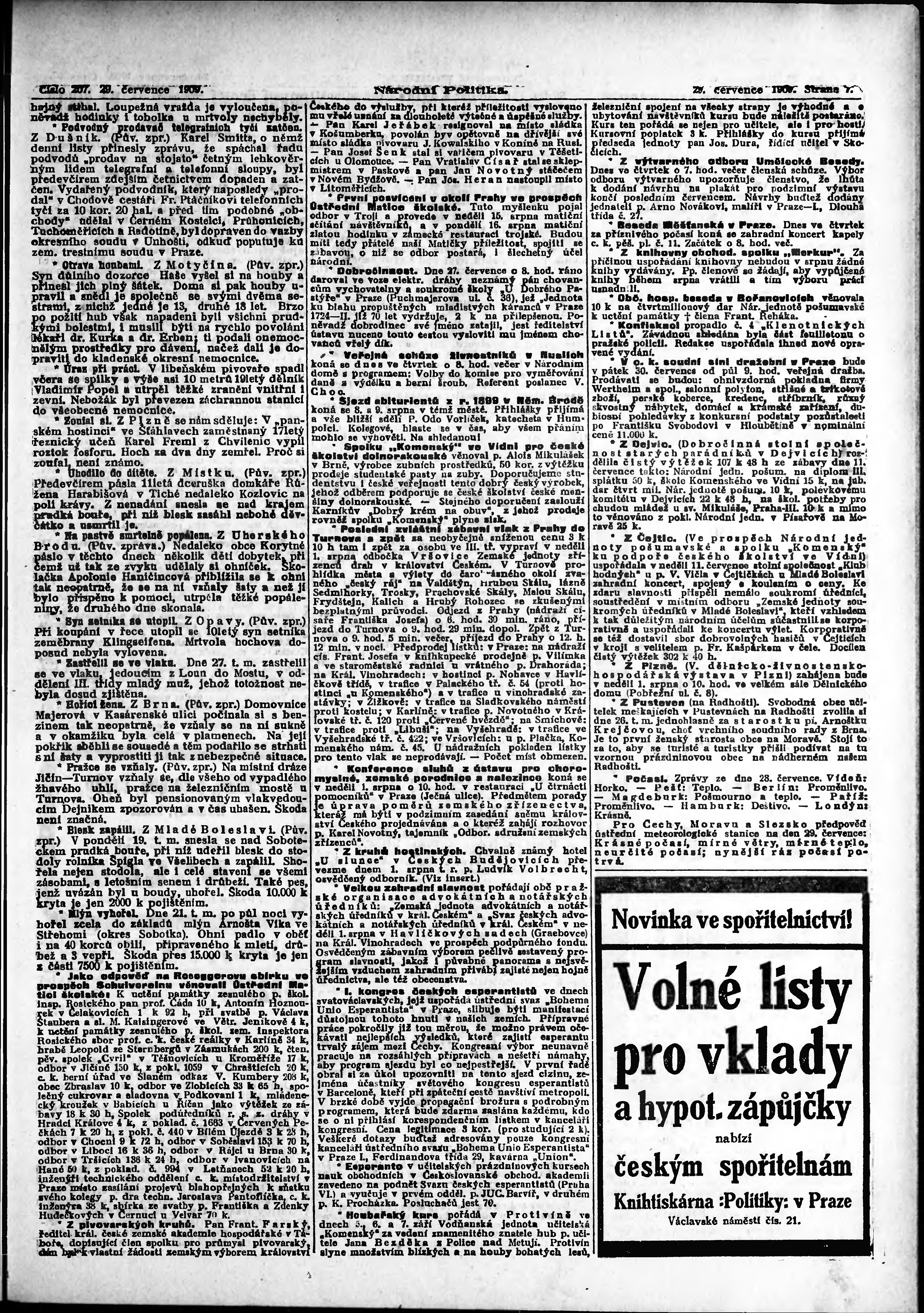 * Datum vydání výtisku: 29.7.1909 Číslo výtisku: 207
