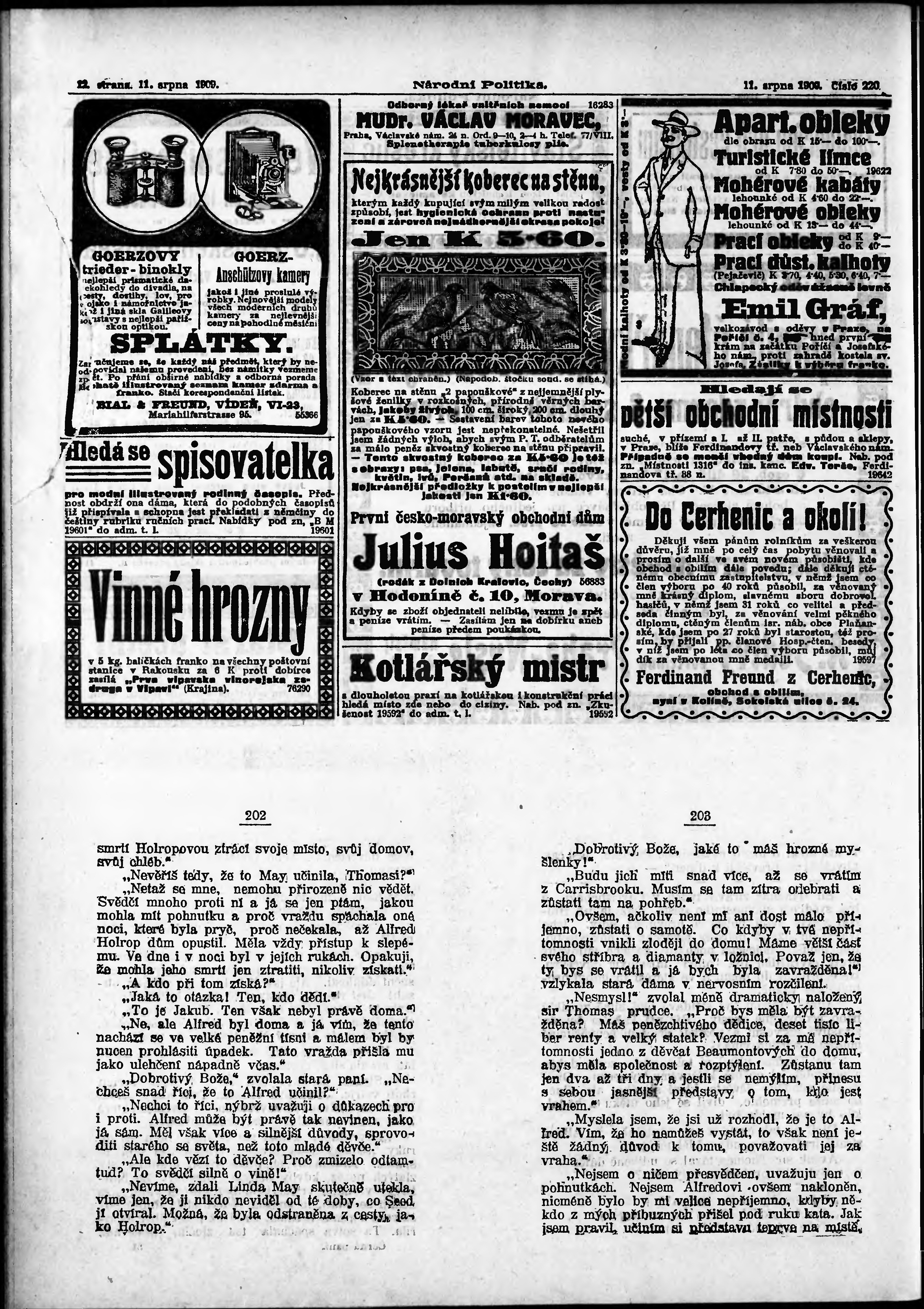 * Datum vydání výtisku: 11.8.1909 Číslo výtisku: 220