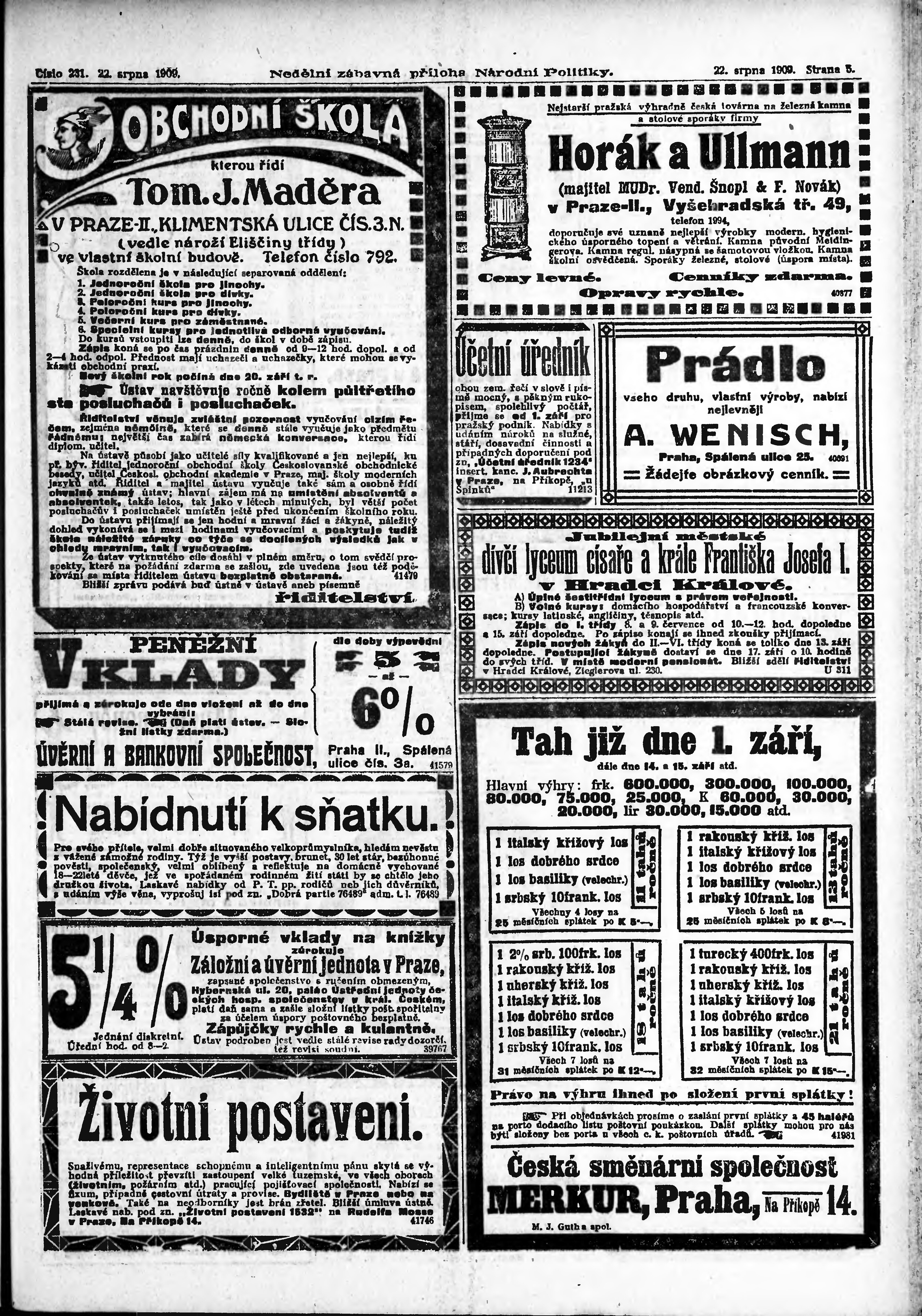 * Datum vydání výtisku: 22.8.1909 Číslo výtisku: 231 Typ výtisku: příloha