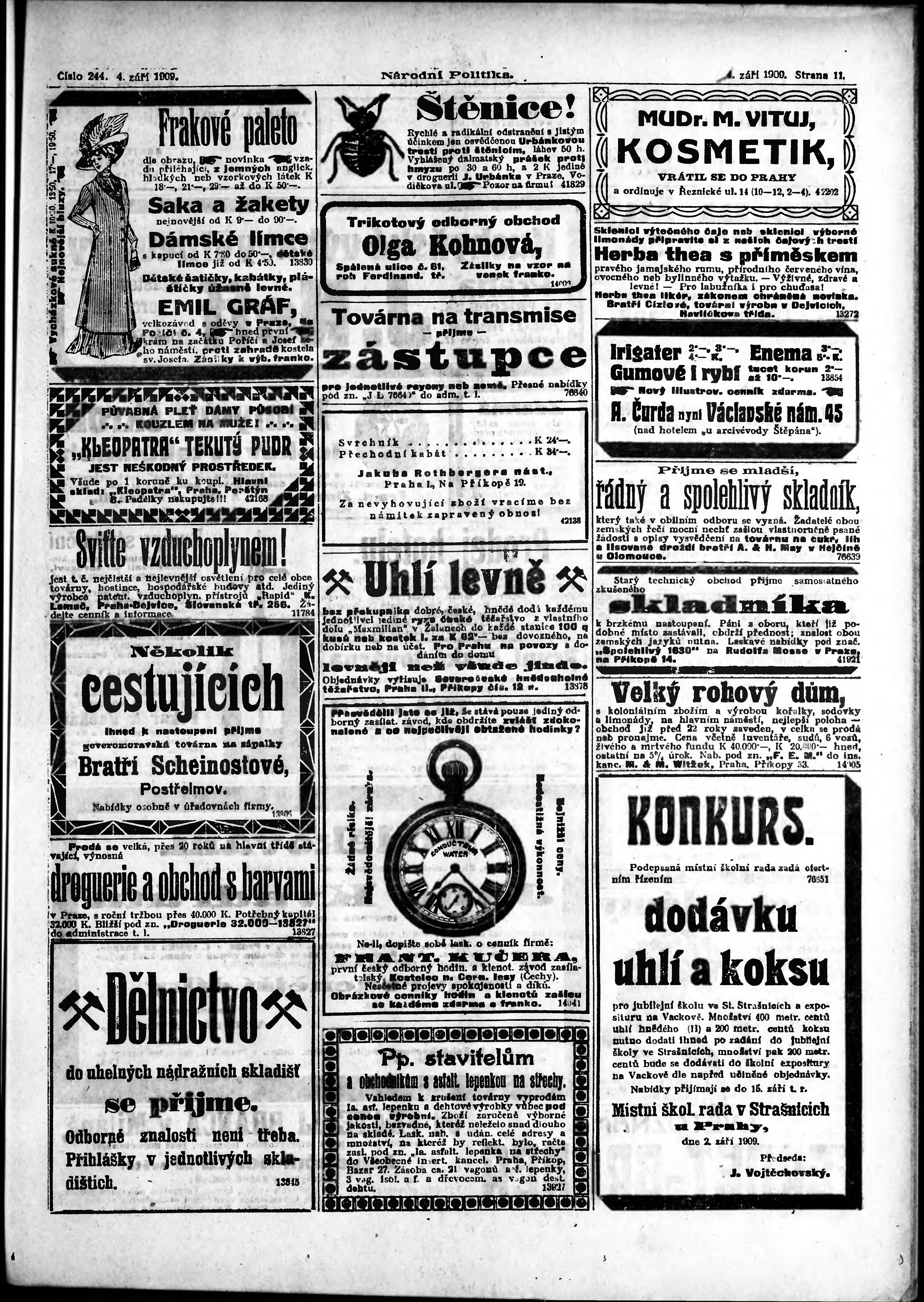 * Datum vydání výtisku: 4.9.1909 Číslo výtisku: 244