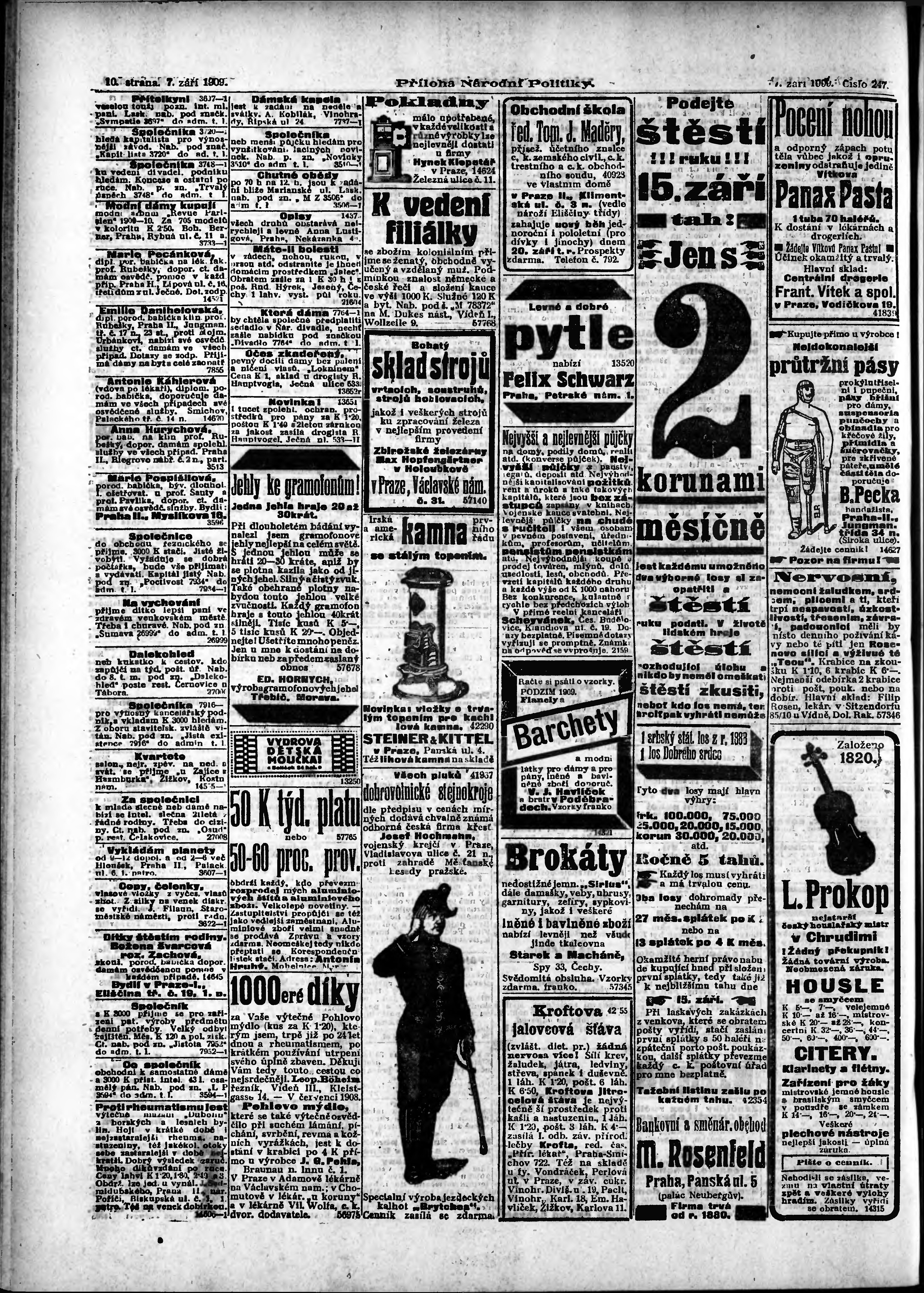 * Datum vydání výtisku: 7.9.1909 Číslo výtisku: 247 Typ výtisku: příloha