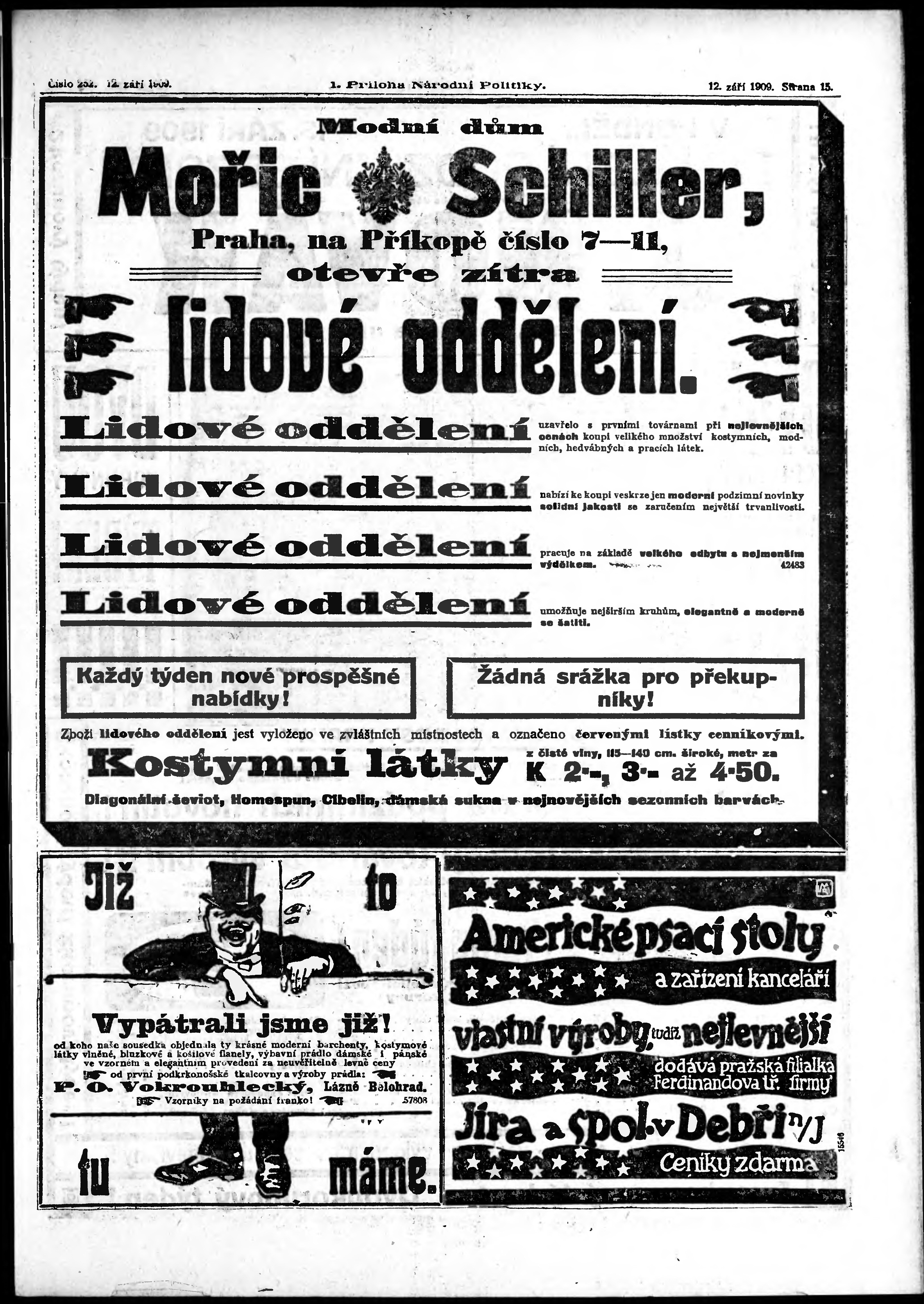 * Datum vydání výtisku: 12.9.1909 Číslo výtisku: 252 Typ výtisku: příloha Poznámky k výtisku: 1. příloha;
