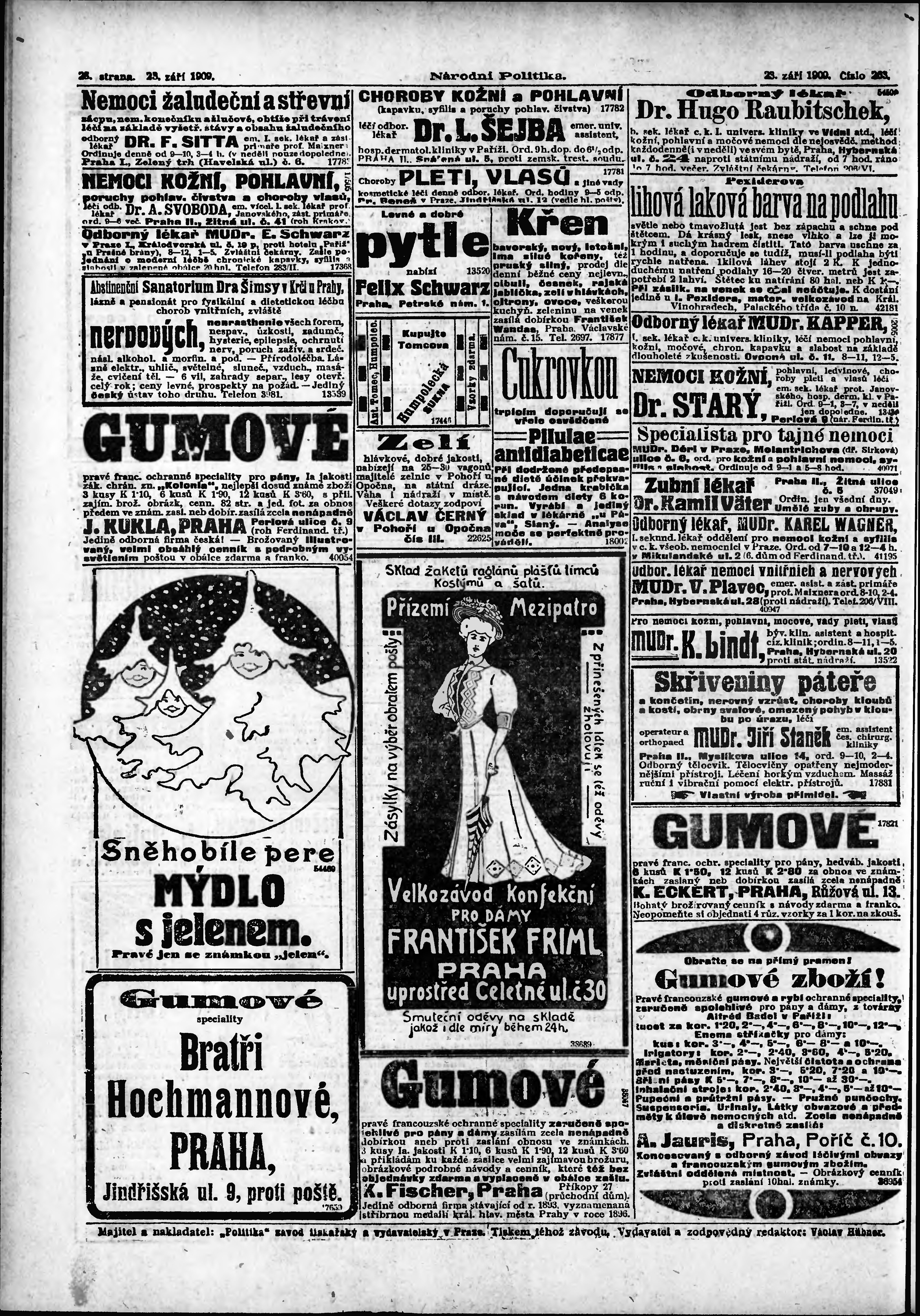 * Datum vydání výtisku: 23.9.1909 Číslo výtisku: 263