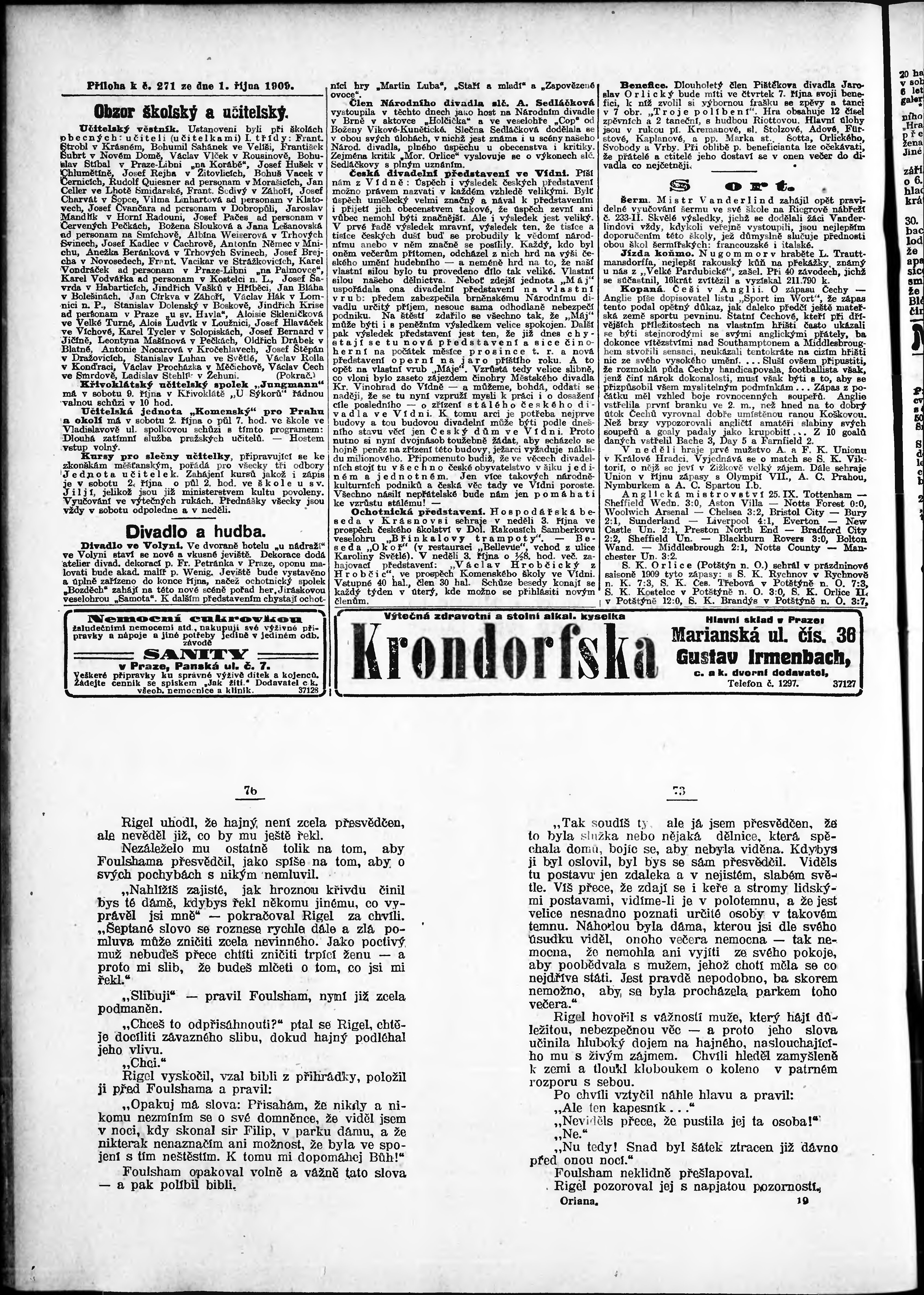 * Datum vydání výtisku: 1.10.1909 Číslo výtisku: 271 Poznámky k výtisku: odpolední vydání;