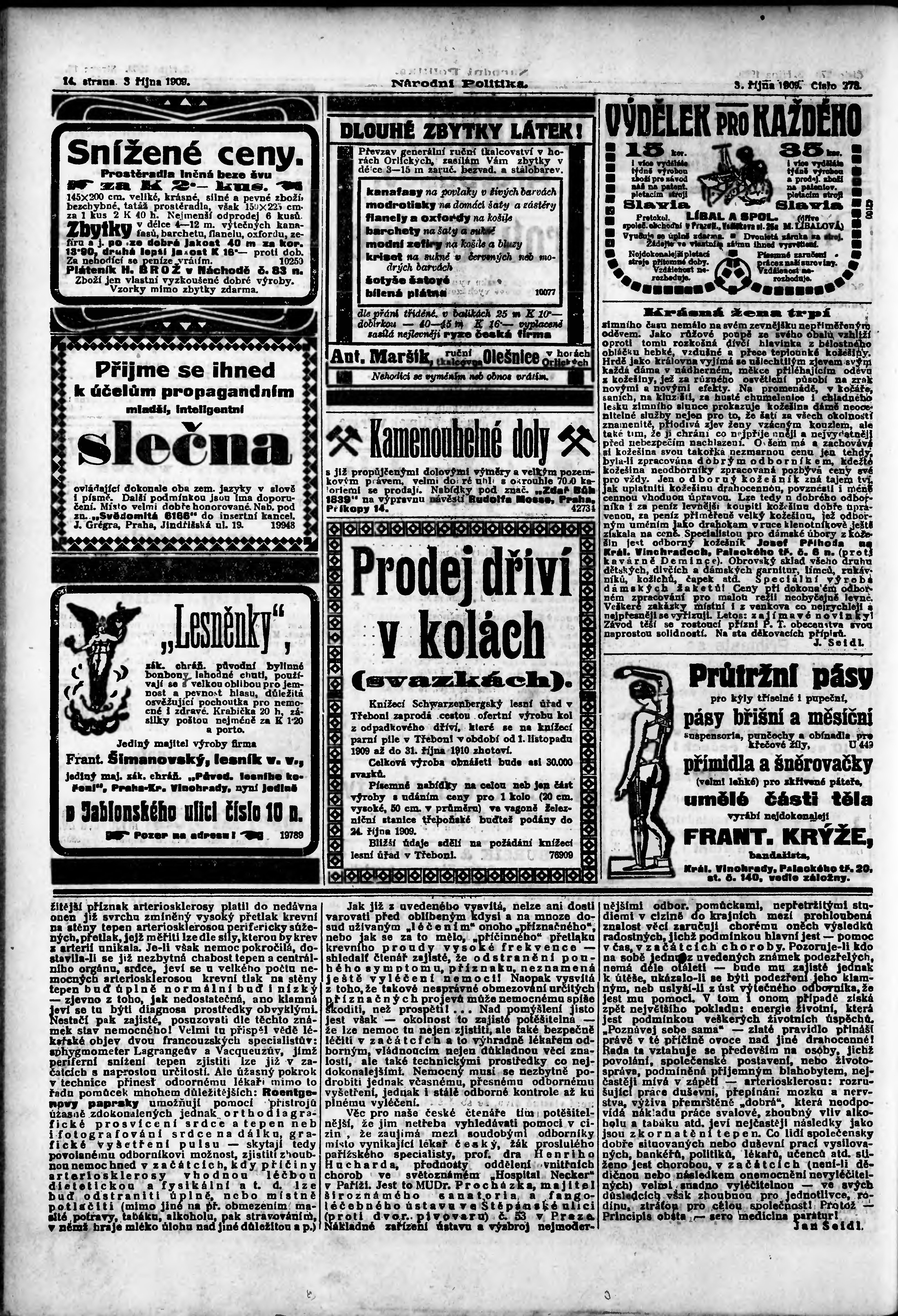 * Datum vydání výtisku: 3.10.1909 Číslo výtisku: 273