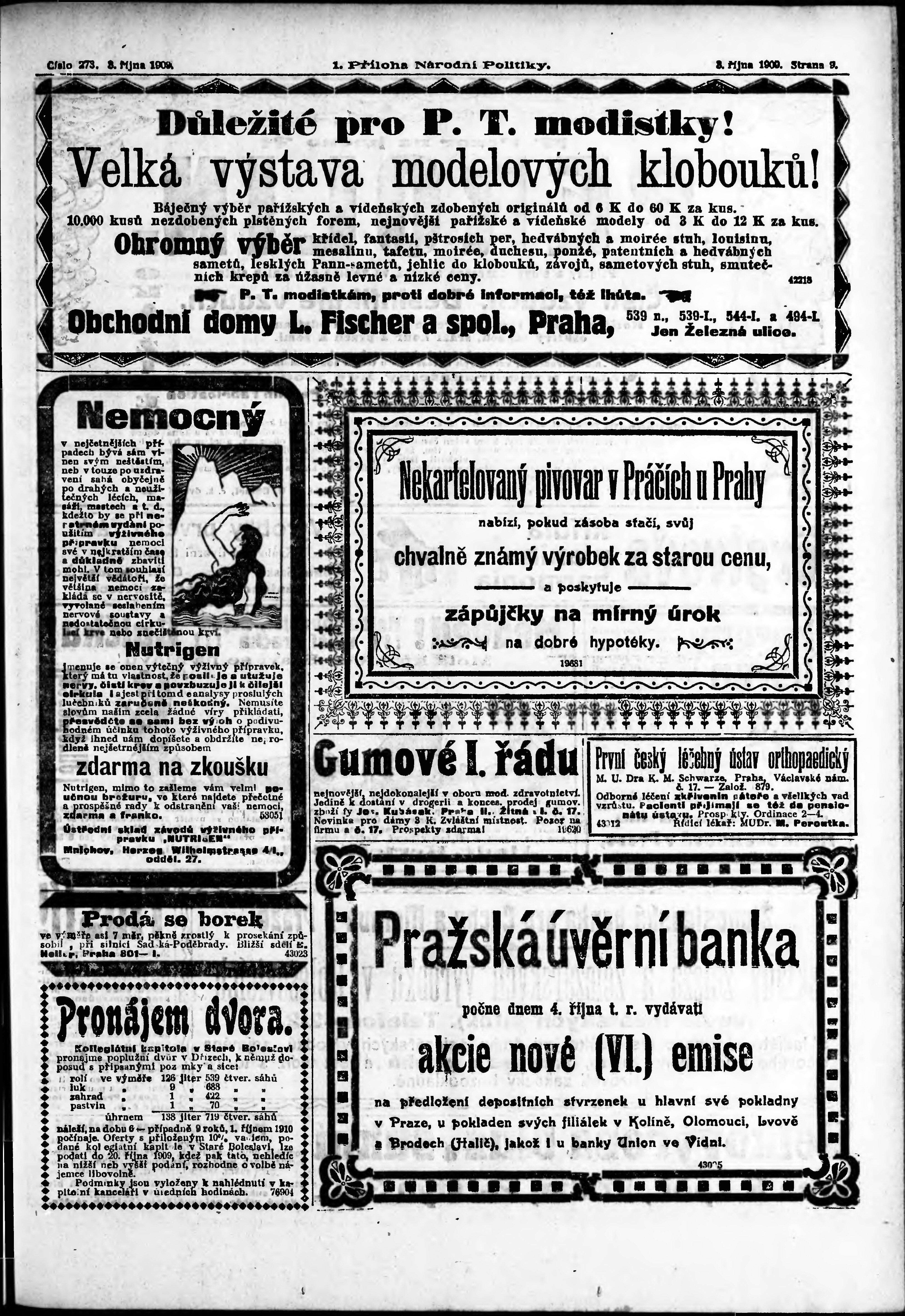 * Datum vydání výtisku: 3.10.1909 Číslo výtisku: 273 Typ výtisku: příloha Poznámky k výtisku: 1. příloha;