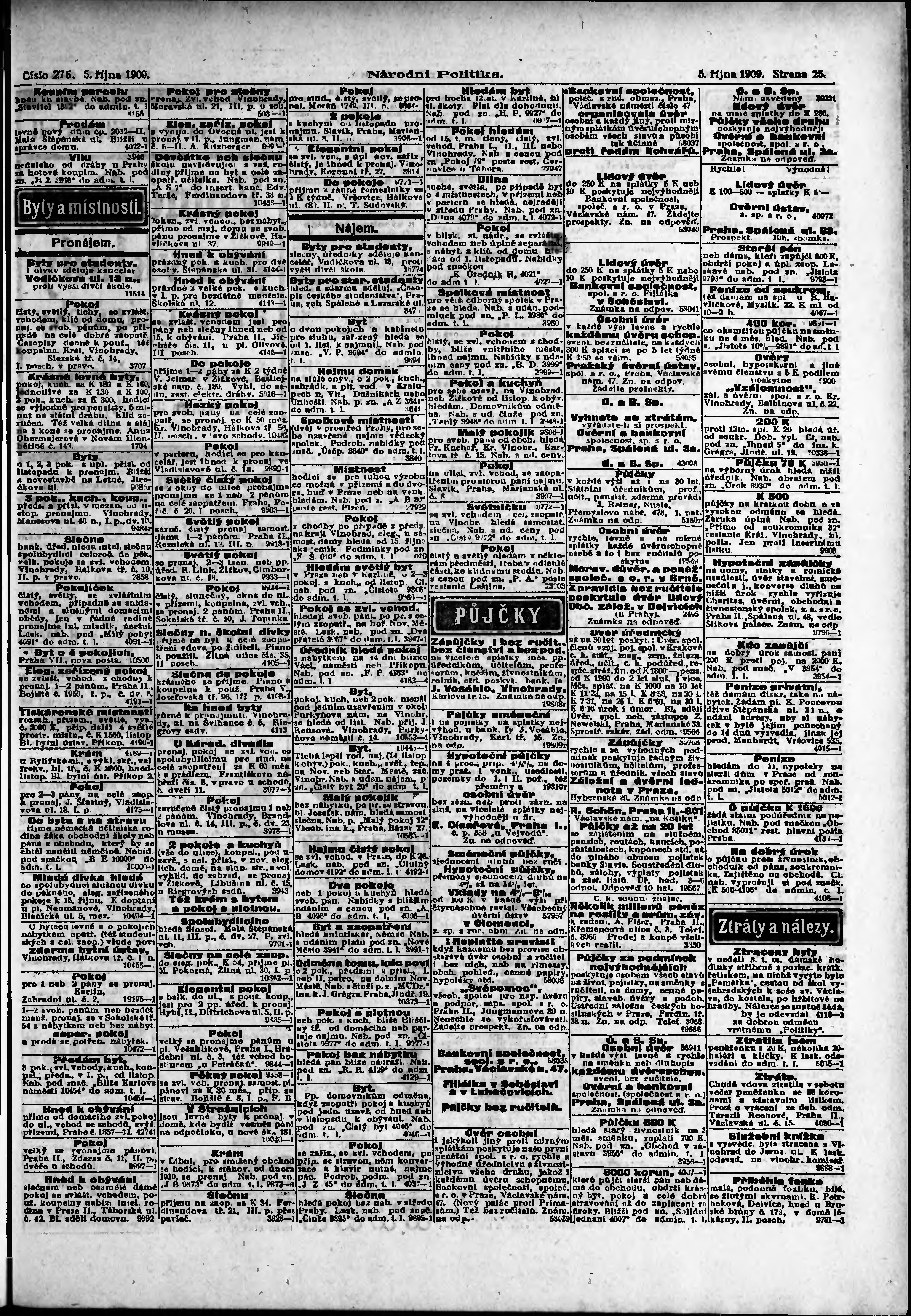* Datum vydání výtisku: 5.10.1909 Číslo výtisku: 275