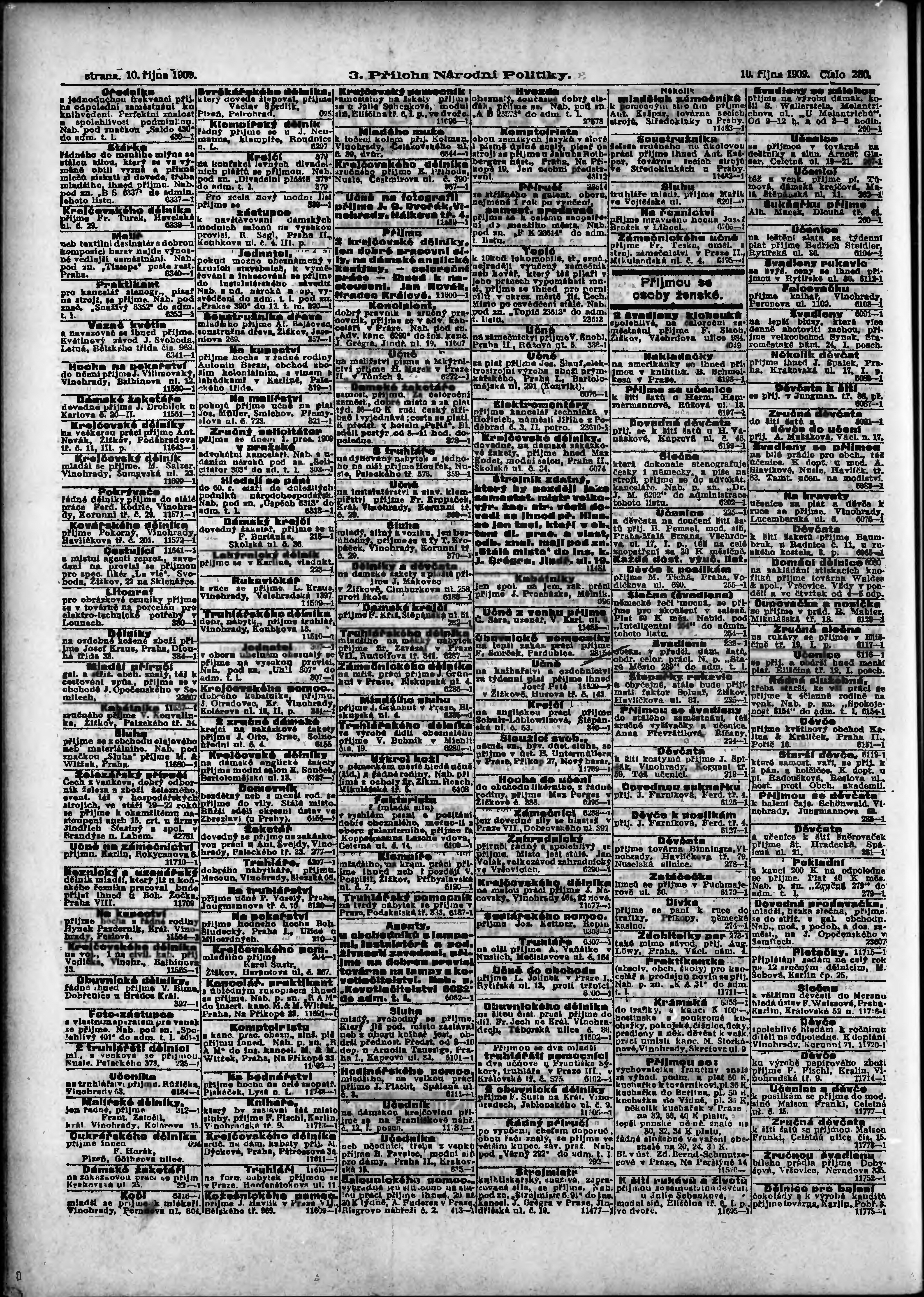 * Datum vydání výtisku: 10.10.1909 Číslo výtisku: 280 Typ výtisku: příloha Poznámky k výtisku: 3. příloha;
