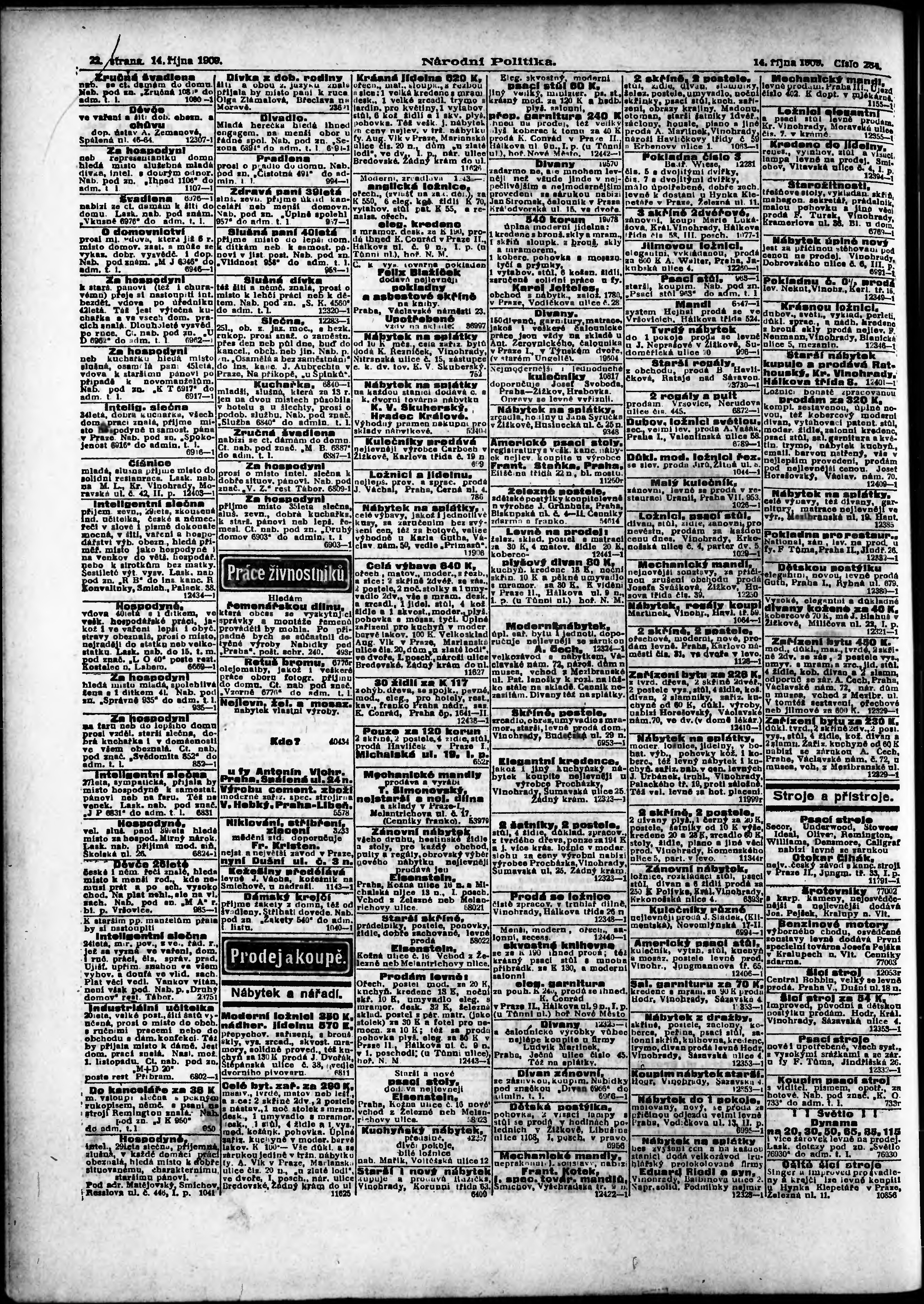 * Datum vydání výtisku: 14.10.1909 Číslo výtisku: 284