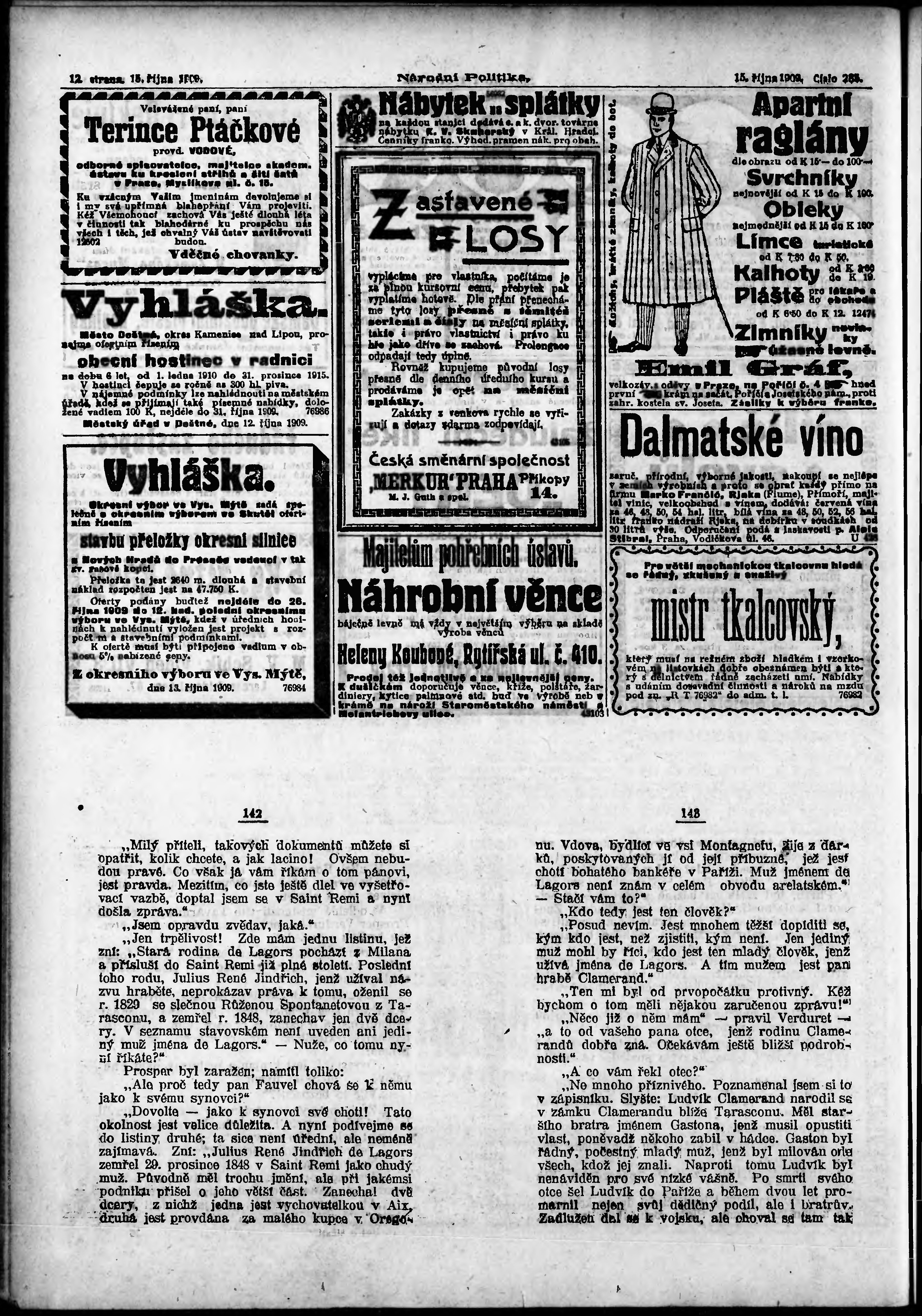 * Datum vydání výtisku: 15.10.1909 Číslo výtisku: 285