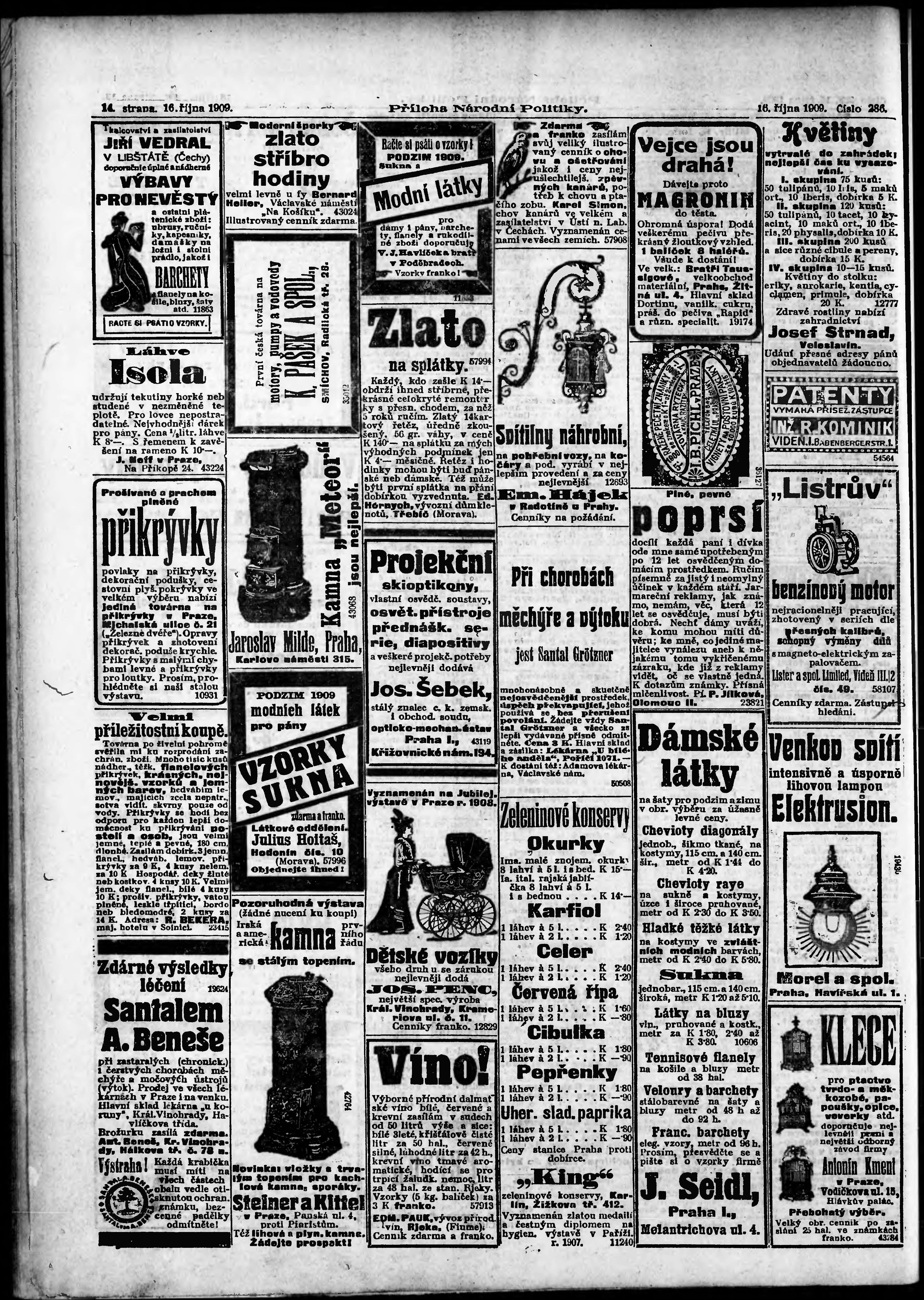 * Datum vydání výtisku: 16.10.1909 Číslo výtisku: 286 Typ výtisku: příloha