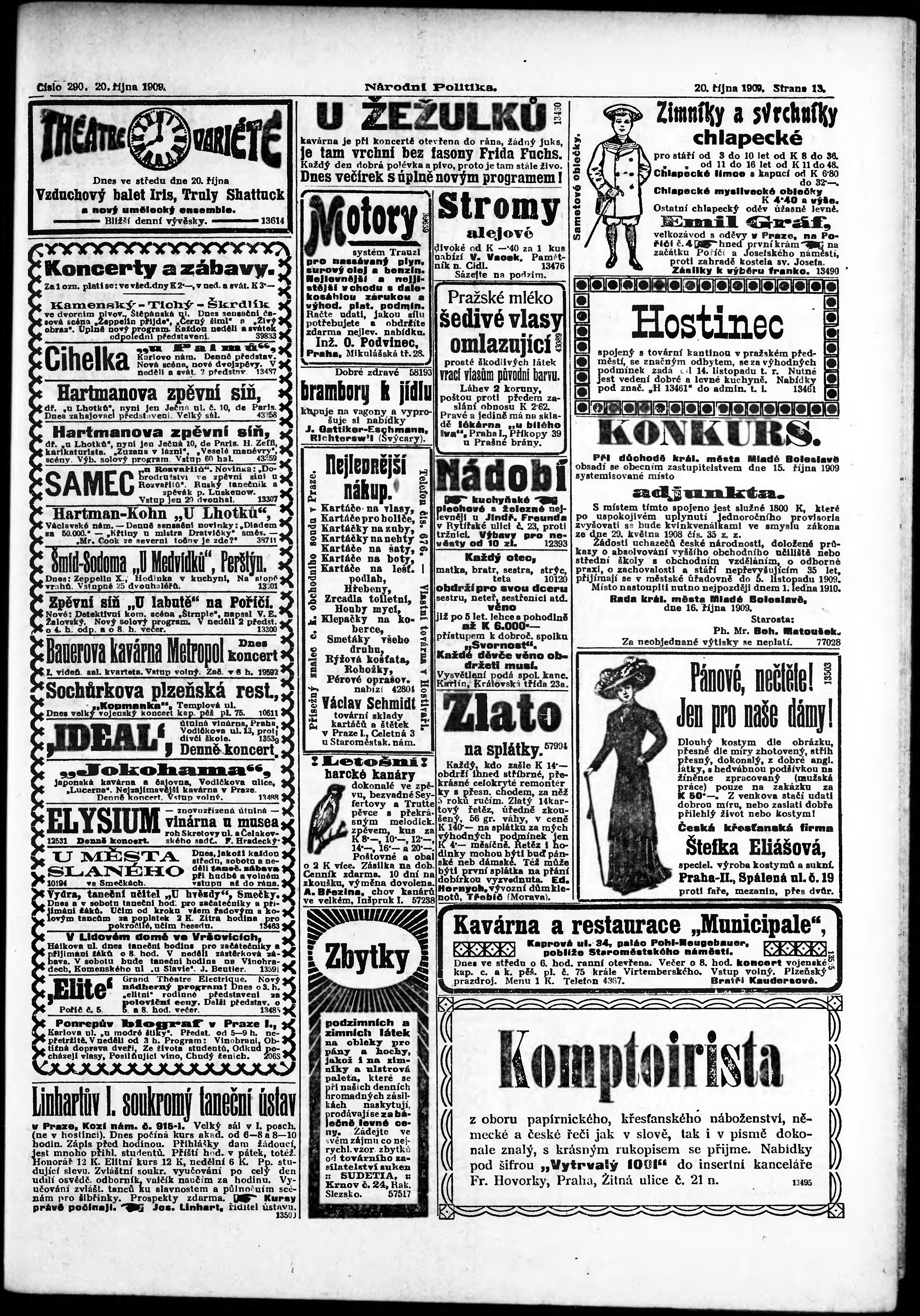 * Datum vydání výtisku: 20.10.1909 Číslo výtisku: 290