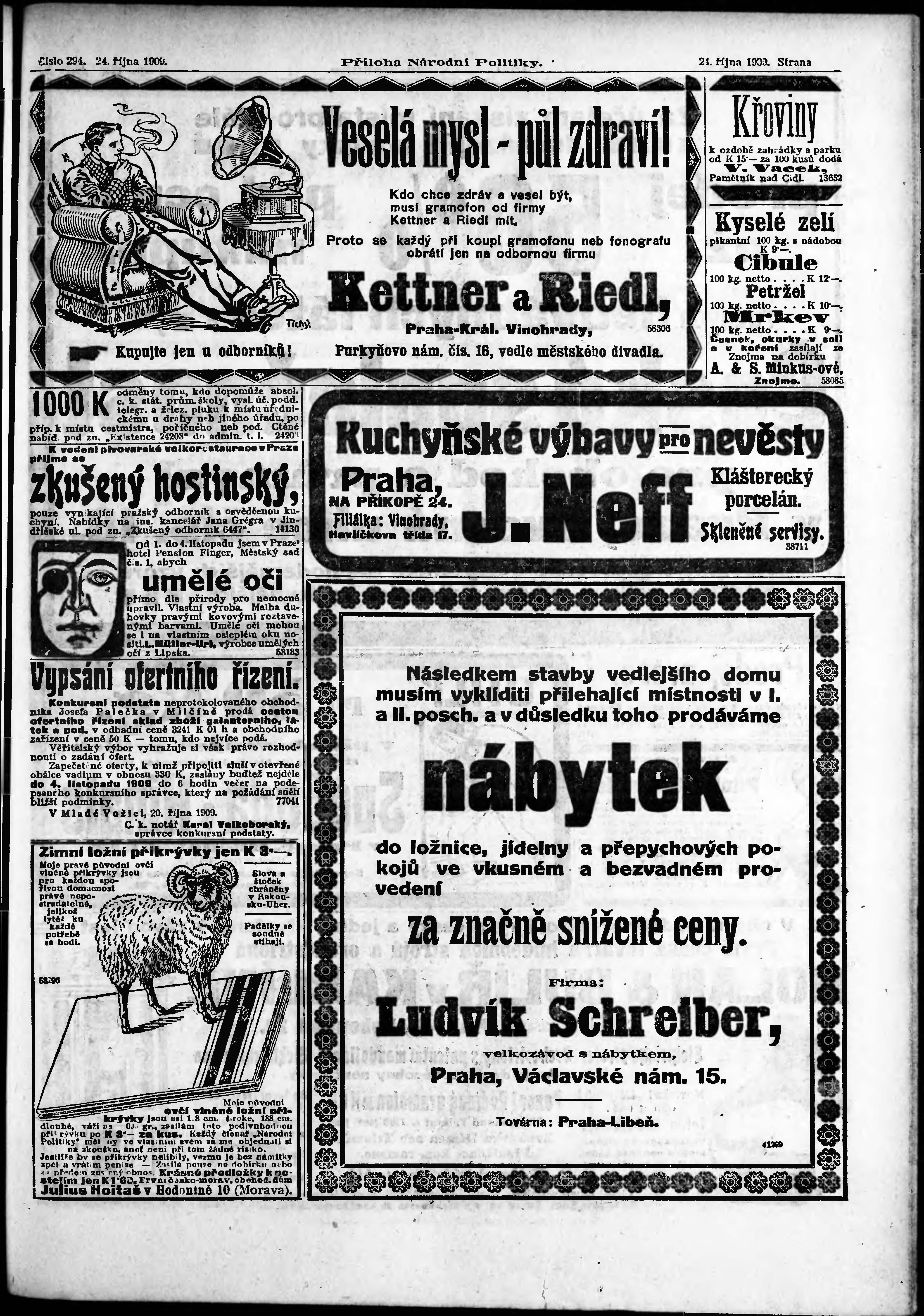 * Datum vydání výtisku: 24.10.1909 Číslo výtisku: 294 Typ výtisku: příloha Poznámky k výtisku: 2. příloha;