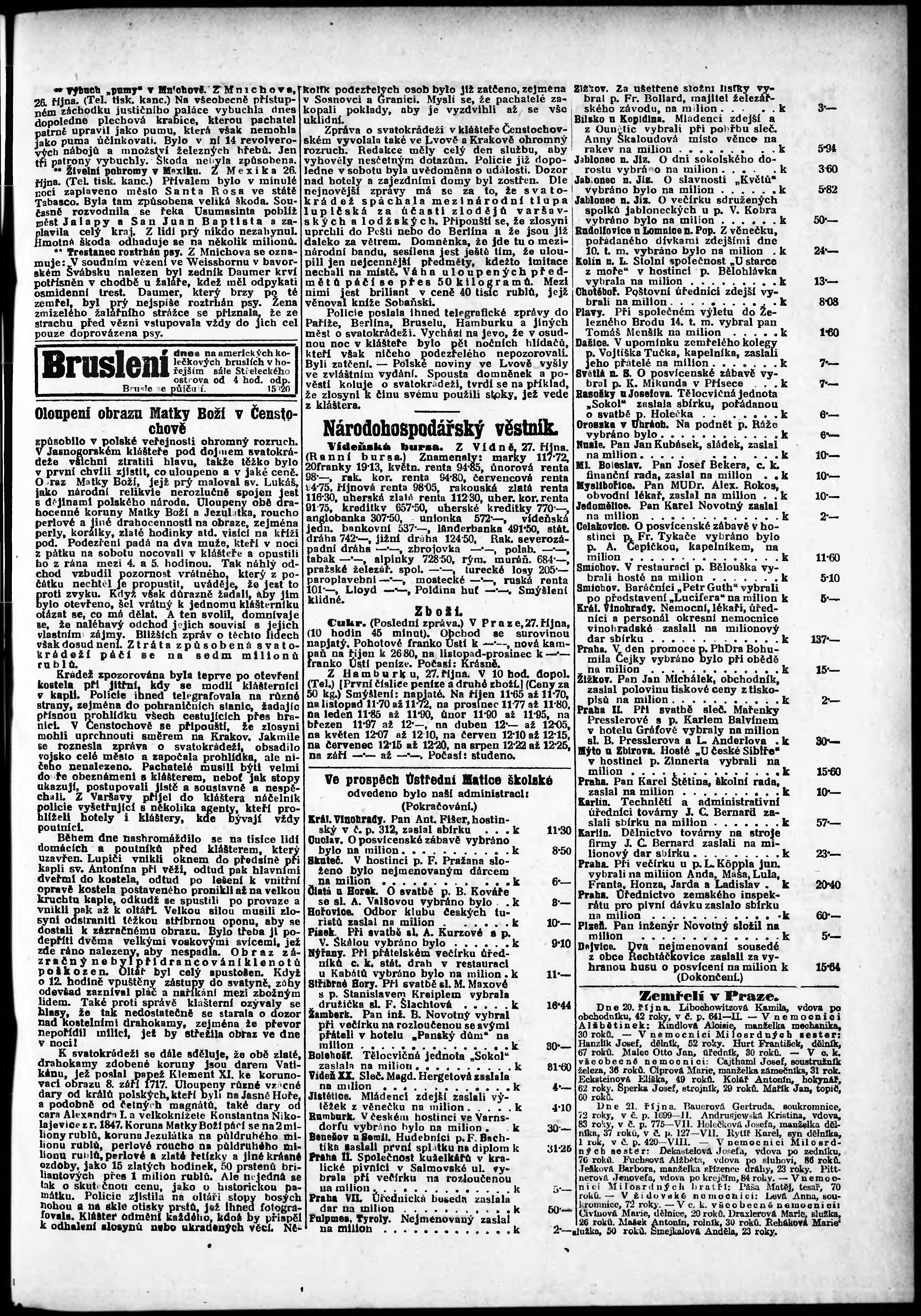 * Datum vydání výtisku: 27.10.1909 Číslo výtisku: 297 Poznámky k výtisku: odpolední vydání;