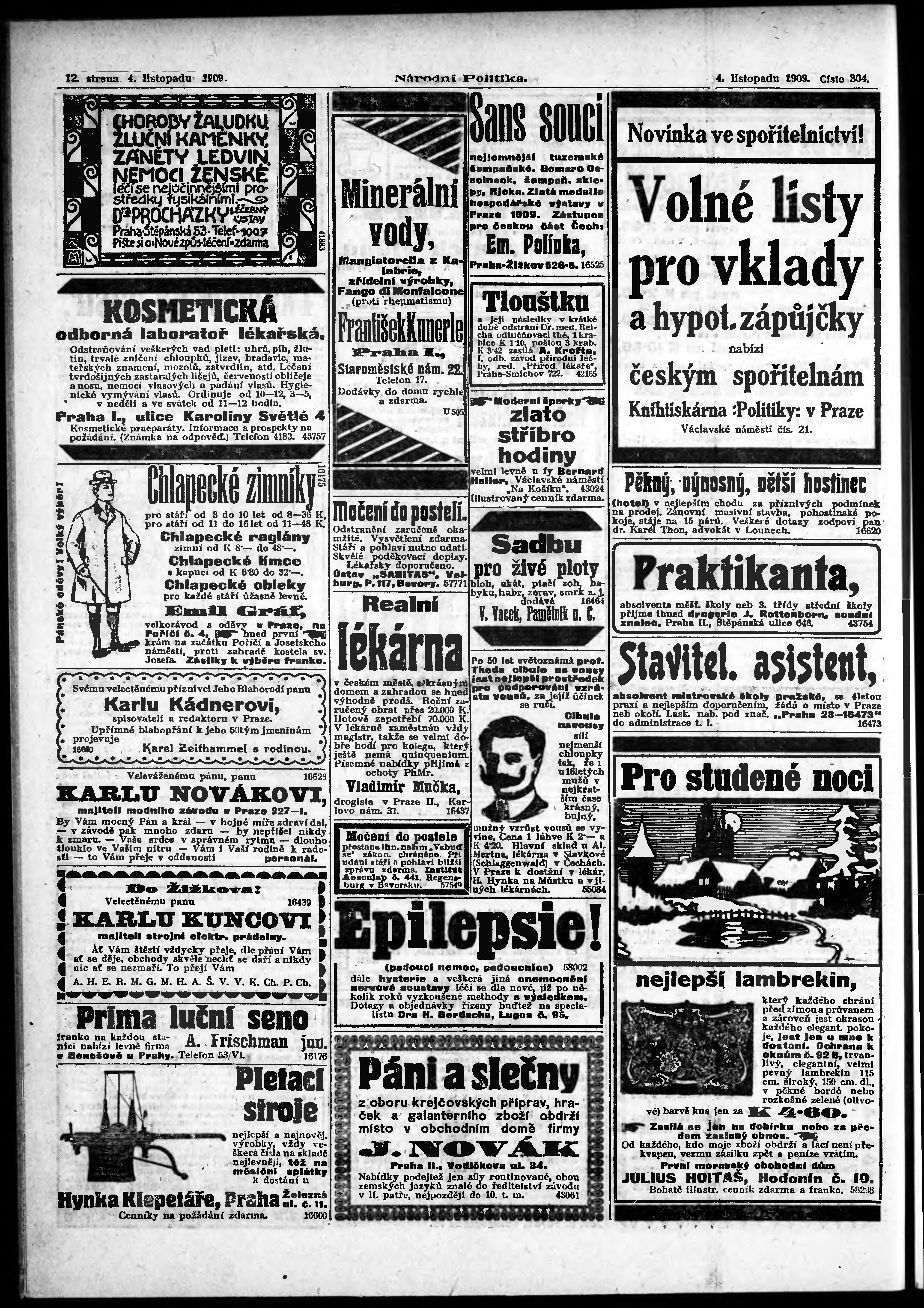 * Datum vydání výtisku: 4.11.1909 Číslo výtisku: 304