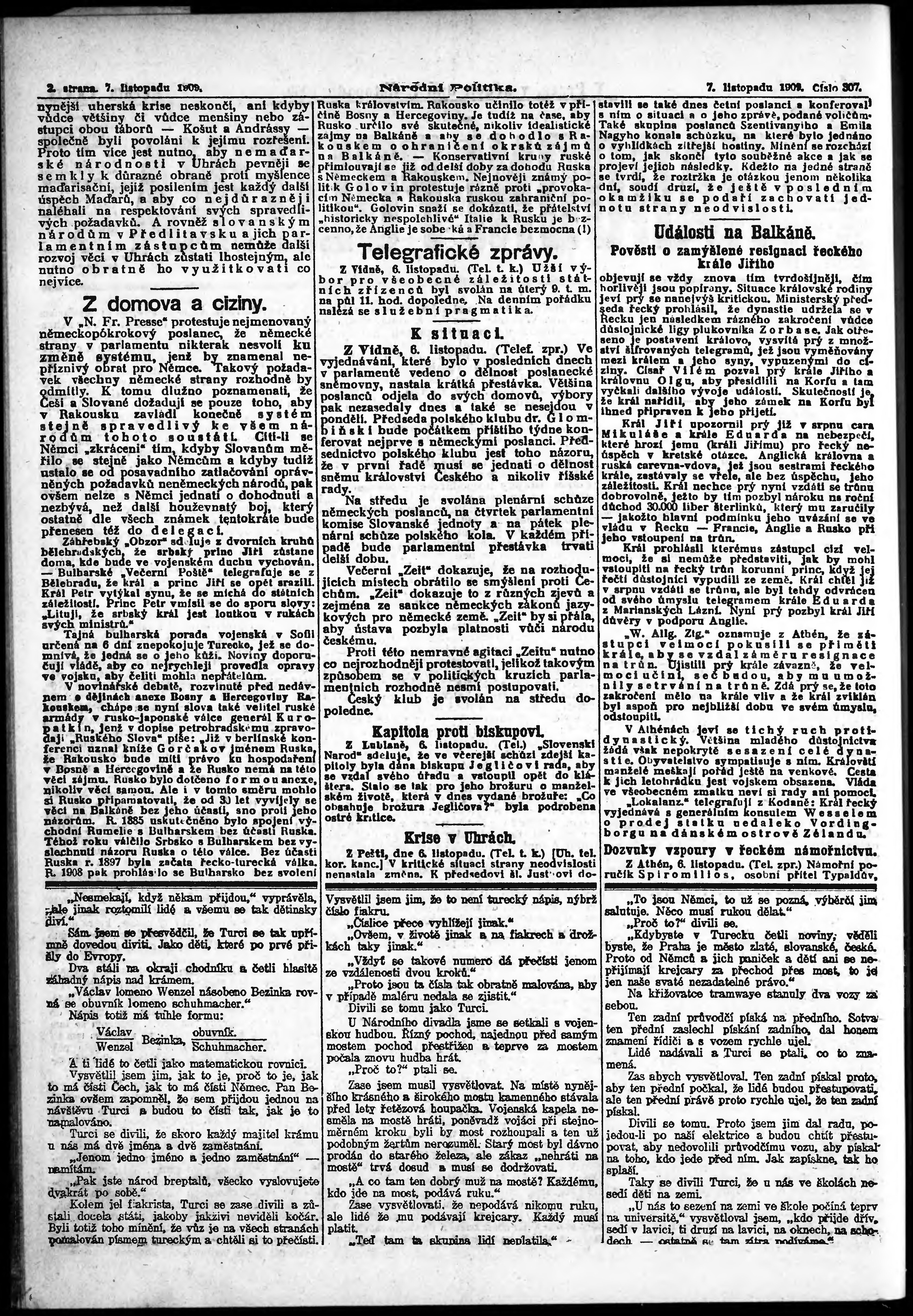 * Datum vydání výtisku: 7.11.1909 Číslo výtisku: 307
