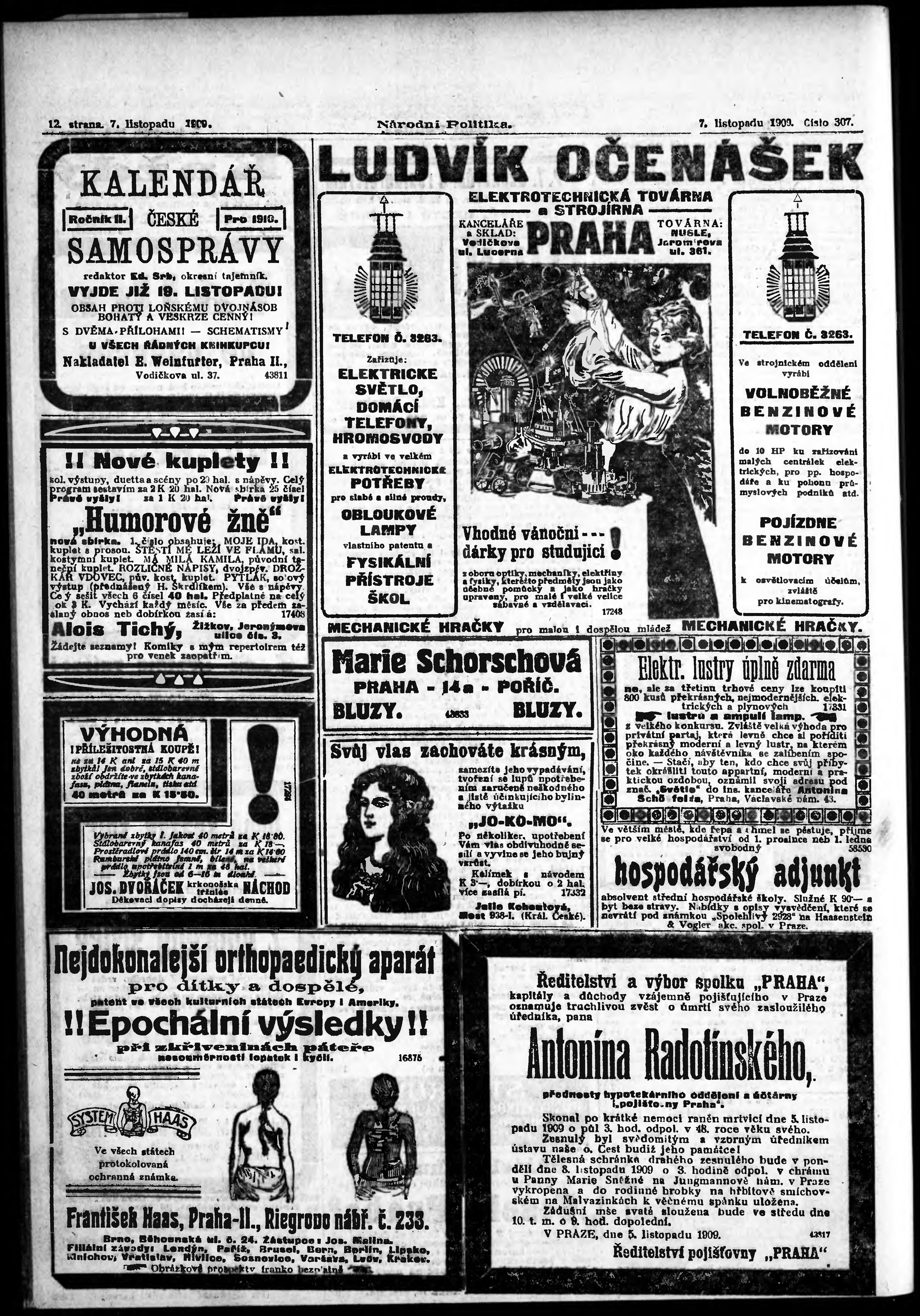 * Datum vydání výtisku: 7.11.1909 Číslo výtisku: 307