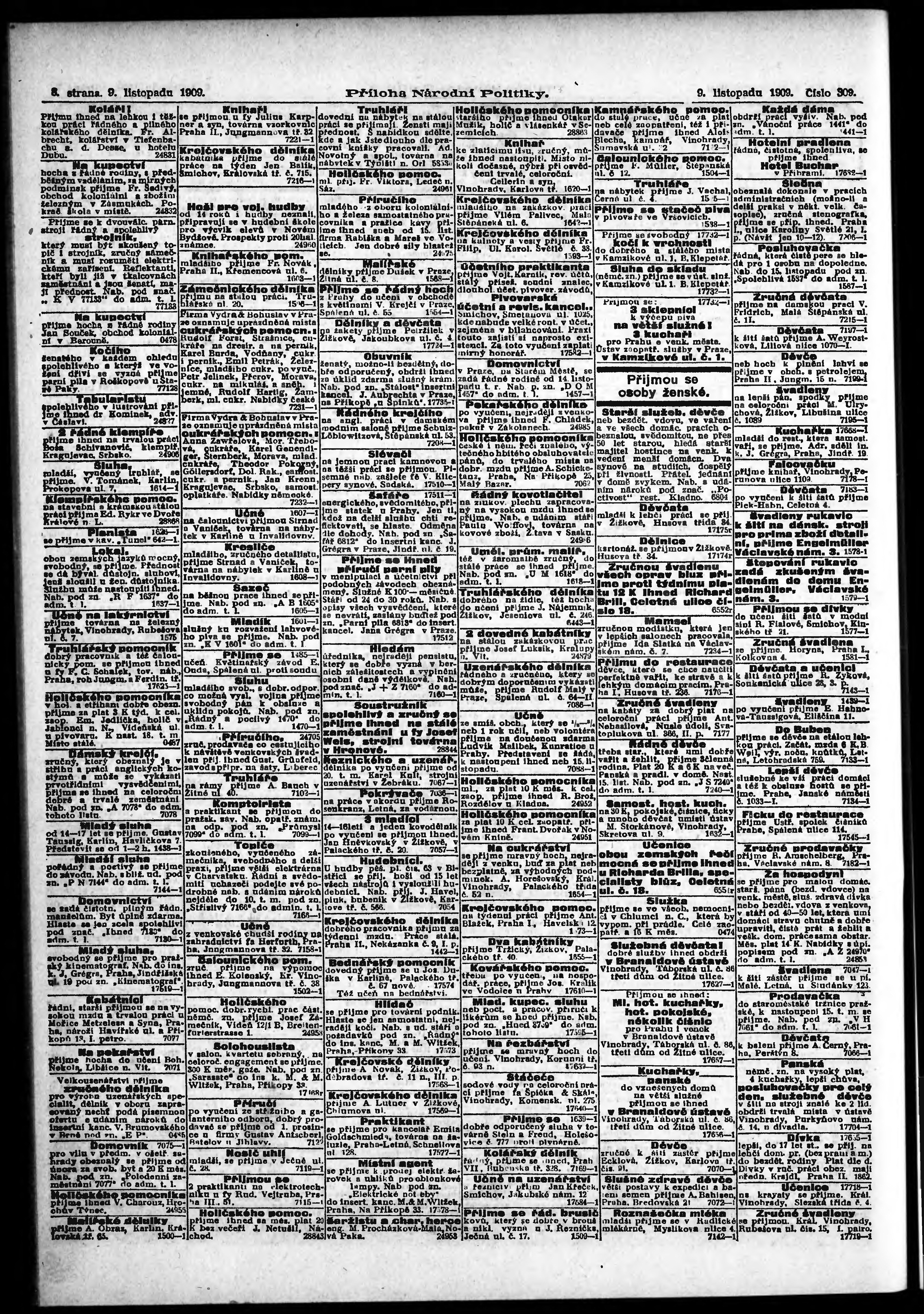 * Datum vydání výtisku: 9.11.1909 Číslo výtisku: 309 Typ výtisku: příloha Poznámky k výtisku: s. 9 - 10 není k dispozici;