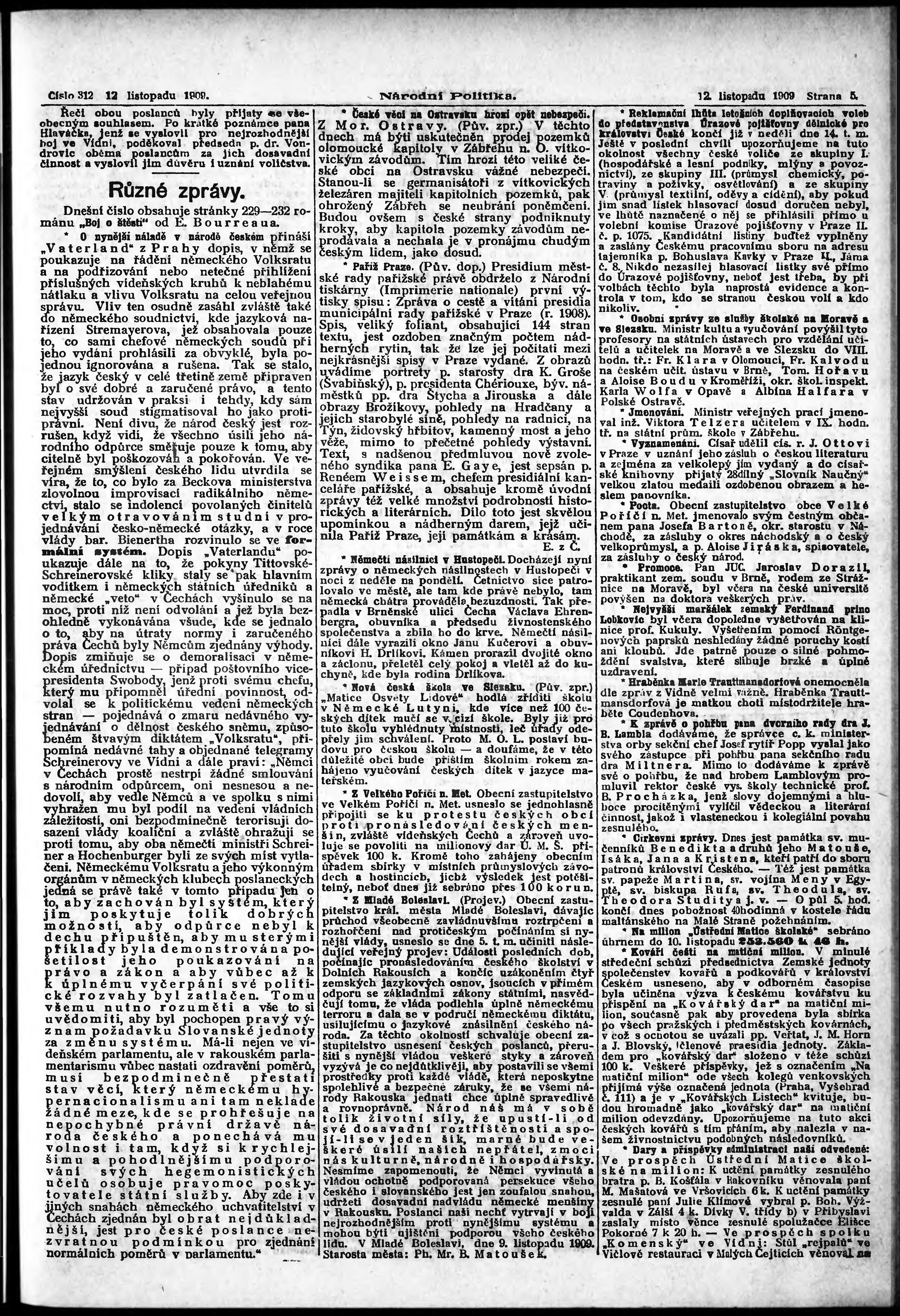 * Datum vydání výtisku: 12.11.1909 Číslo výtisku: 312 Poznámky k výtisku: s. 13 - 14 není k dispozici;