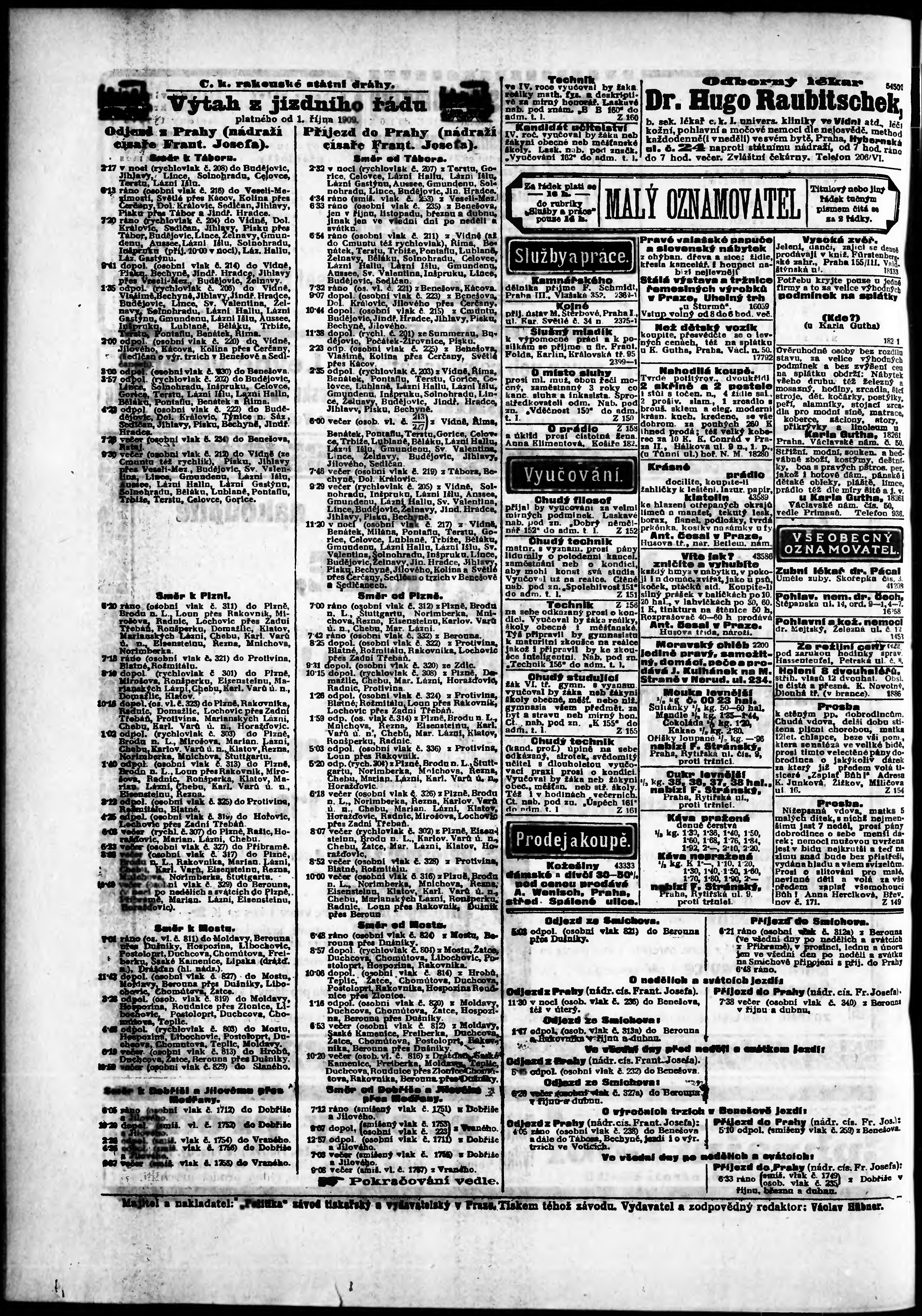 * Datum vydání výtisku: 12.11.1909 Číslo výtisku: 312 Poznámky k výtisku: odpolední vydání;