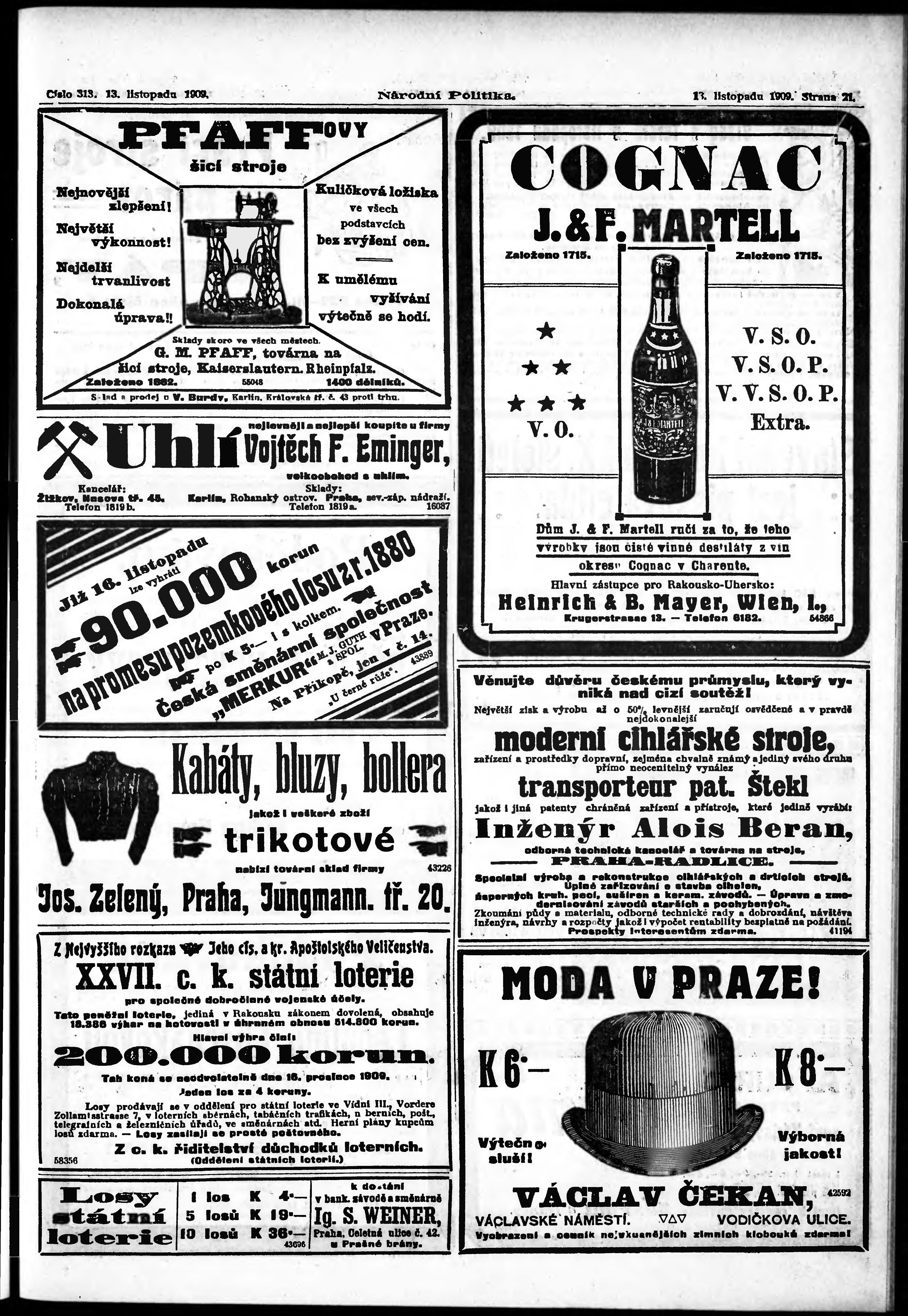 * Datum vydání výtisku: 13.11.1909 Číslo výtisku: 313