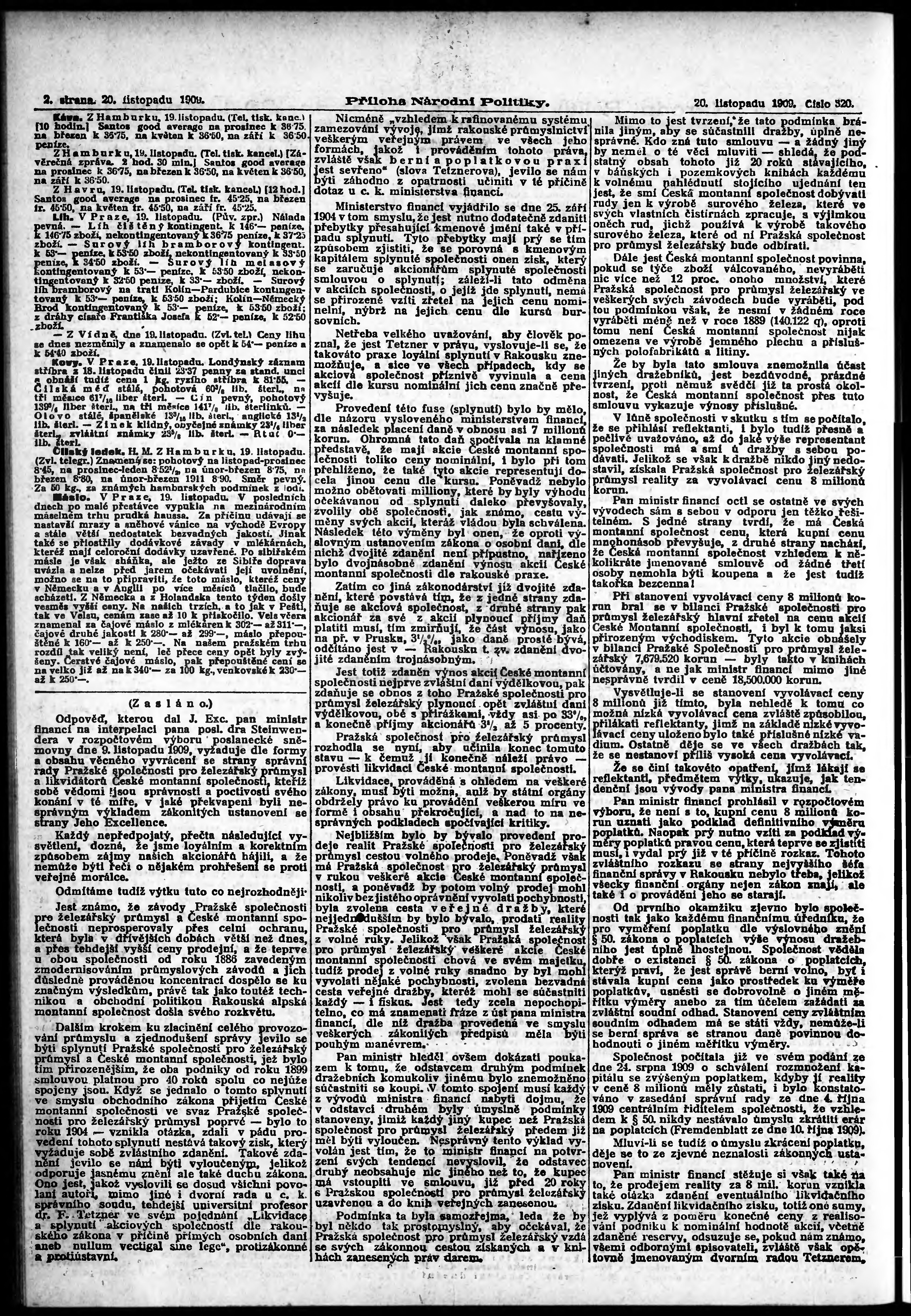 * Datum vydání výtisku: 20.11.1909 Číslo výtisku: 320 Typ výtisku: příloha