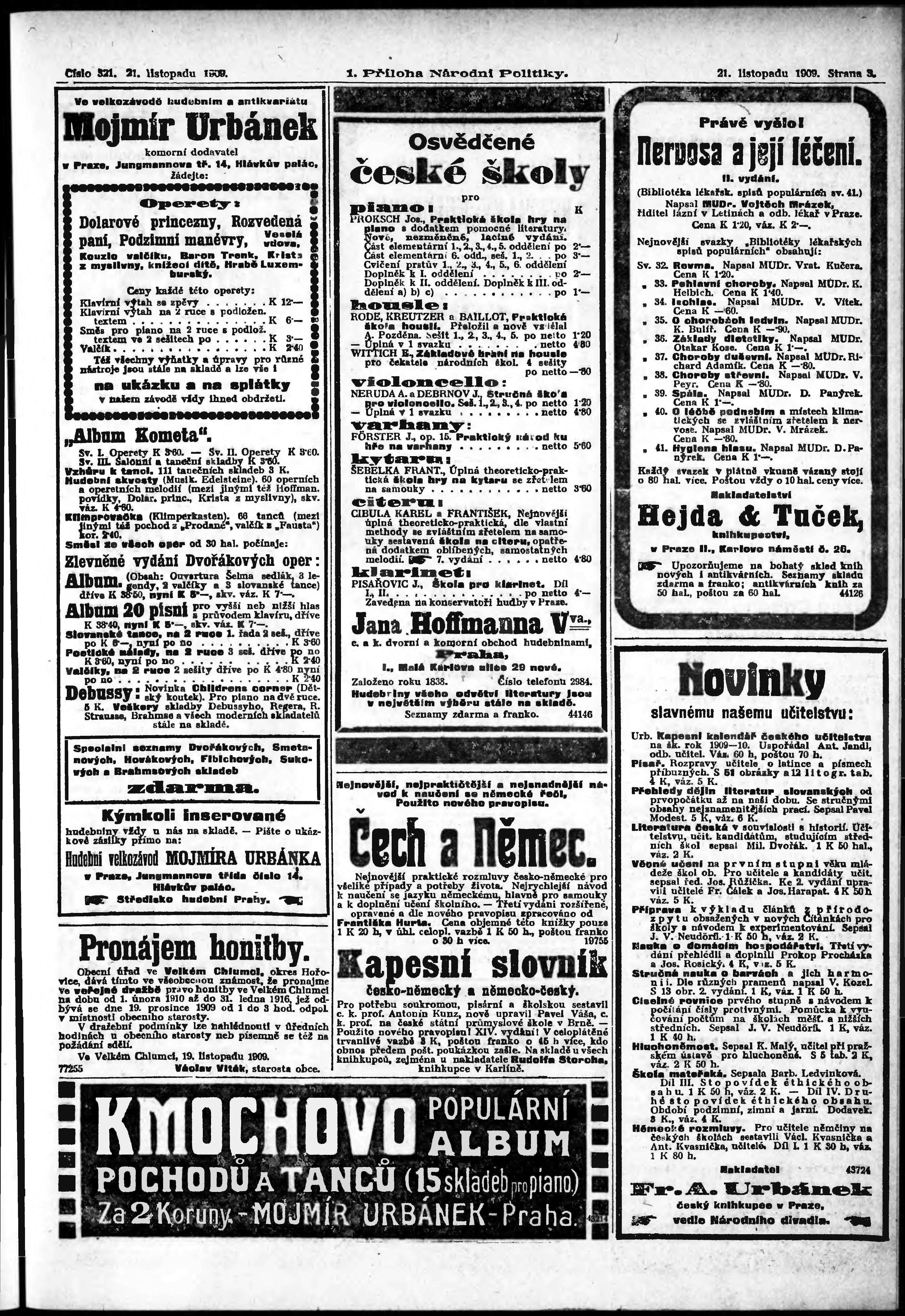 * Datum vydání výtisku: 21.11.1909 Číslo výtisku: 321 Typ výtisku: příloha Poznámky k výtisku: 1. příloha;