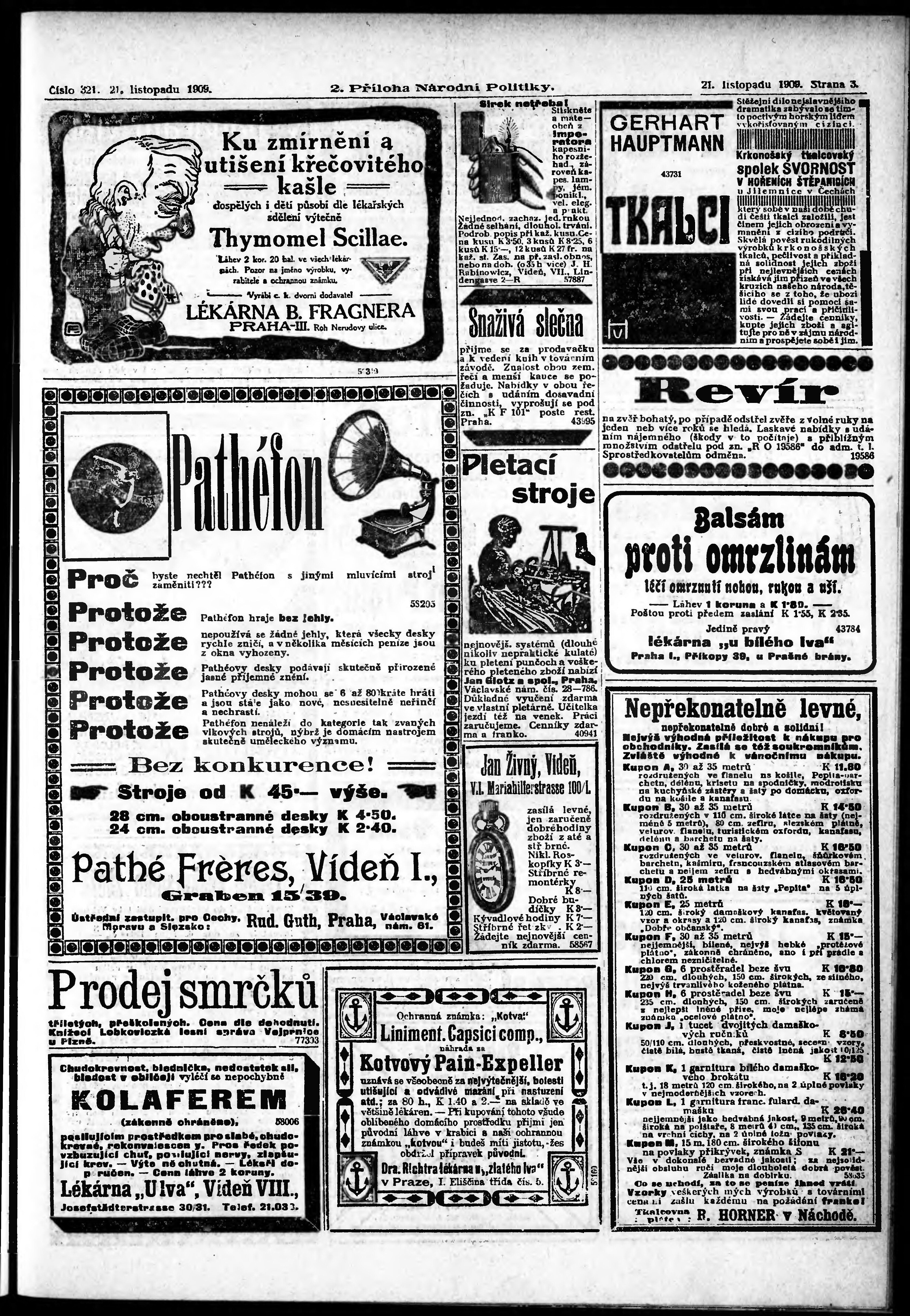 * Datum vydání výtisku: 21.11.1909 Číslo výtisku: 321 Typ výtisku: příloha Poznámky k výtisku: 2. příloha;