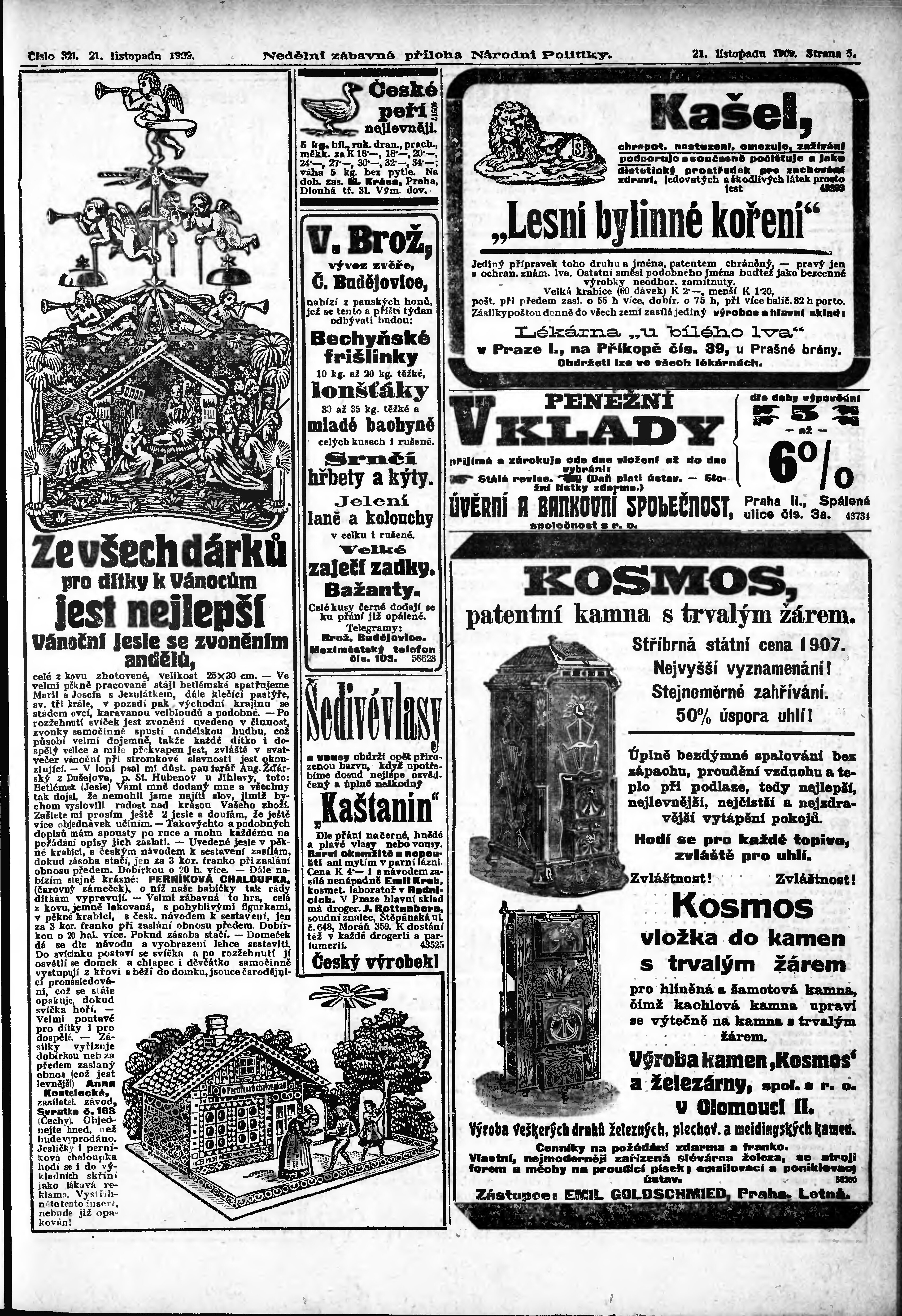 * Datum vydání výtisku: 21.11.1909 Číslo výtisku: 321 Typ výtisku: příloha Poznámky k výtisku: s. 1 - 4 není k dispozici;