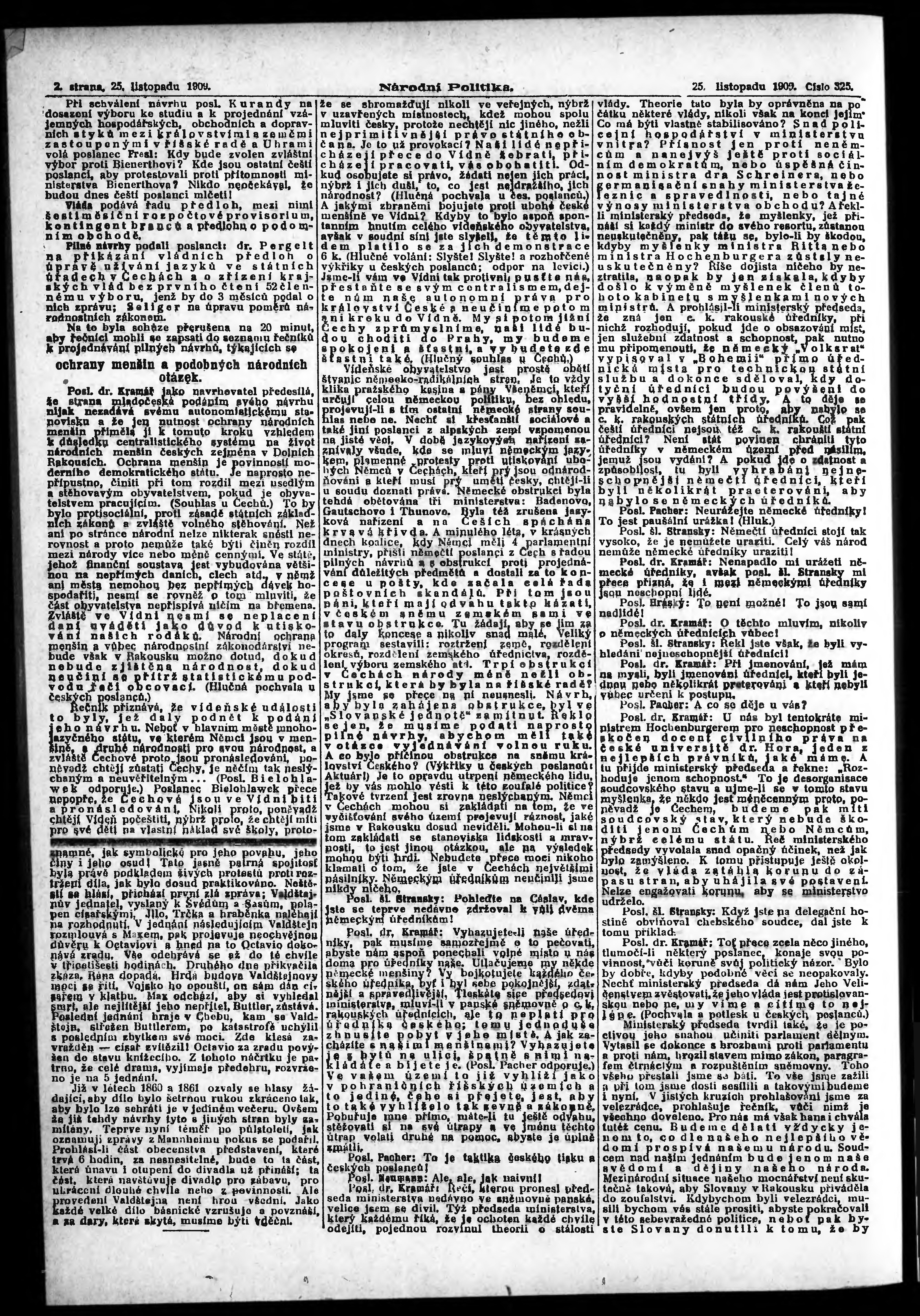 * Datum vydání výtisku: 25.11.1909 Číslo výtisku: 325 Poznámky k výtisku: s. 15 - 16 není k dispozici;
