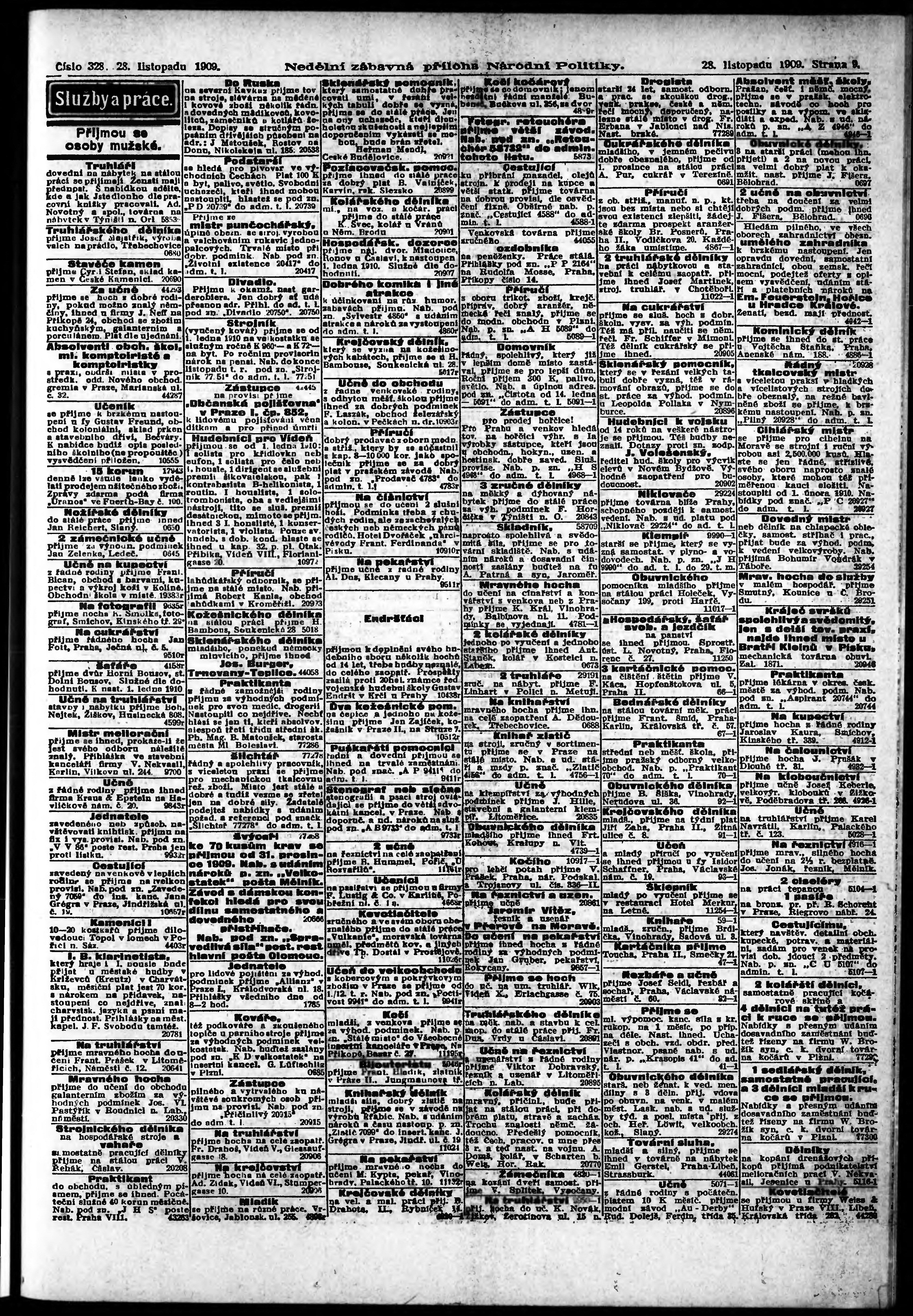 * Datum vydání výtisku: 28.11.1909 Číslo výtisku: 328 Typ výtisku: příloha