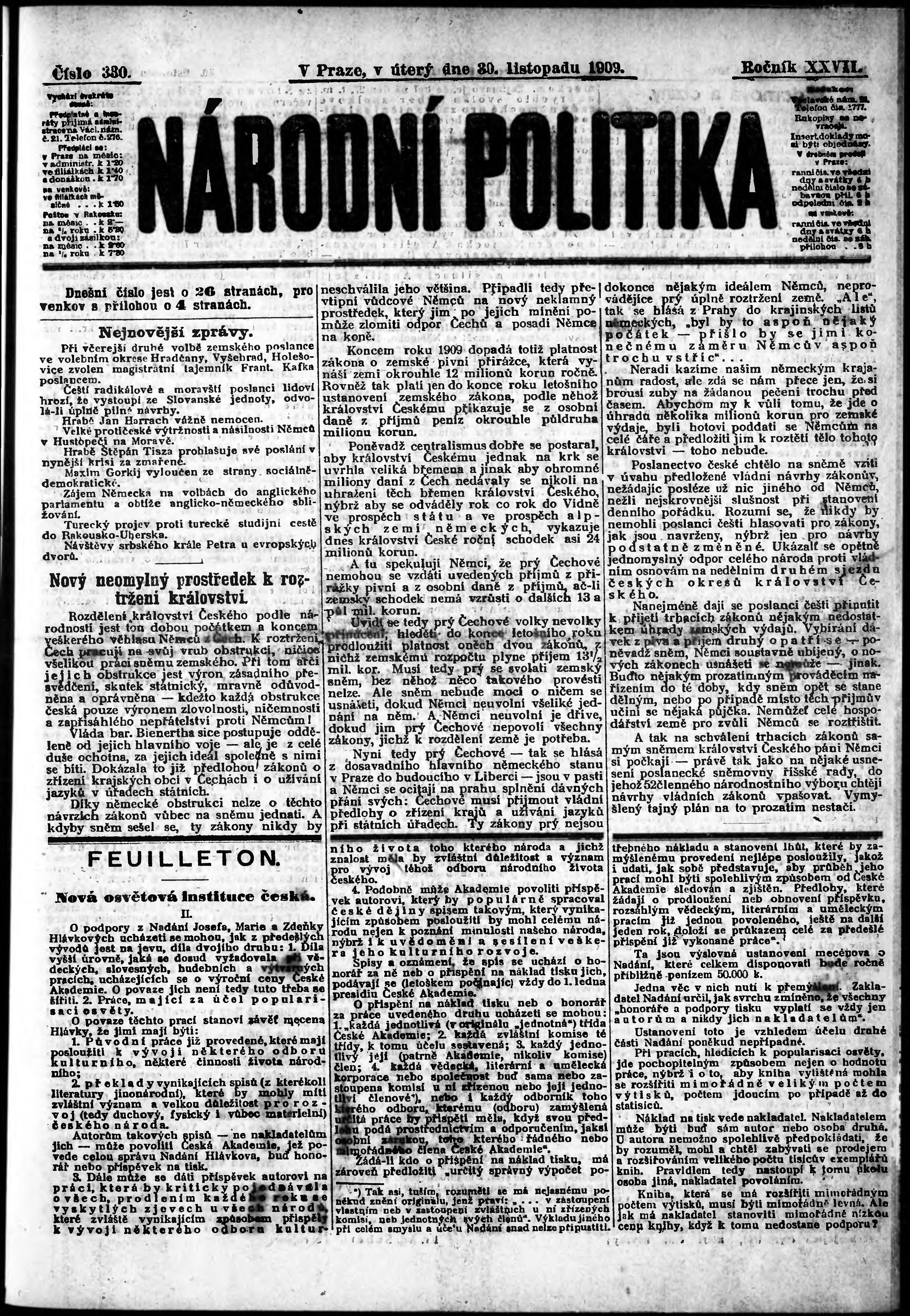 * Datum vydání výtisku: 30.11.1909 Číslo výtisku: 330