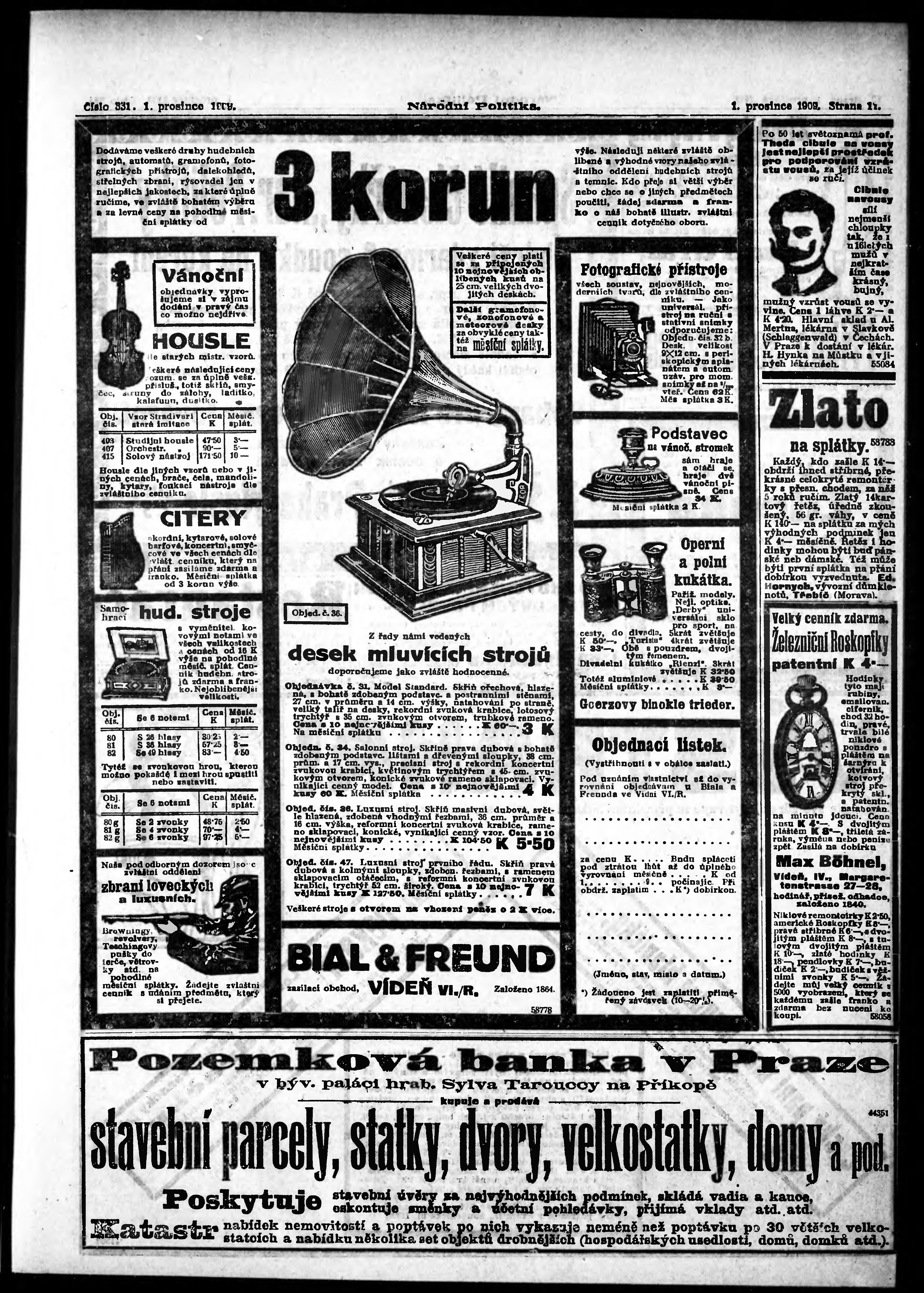 * Datum vydání výtisku: 1.12.1909 Číslo výtisku: 331