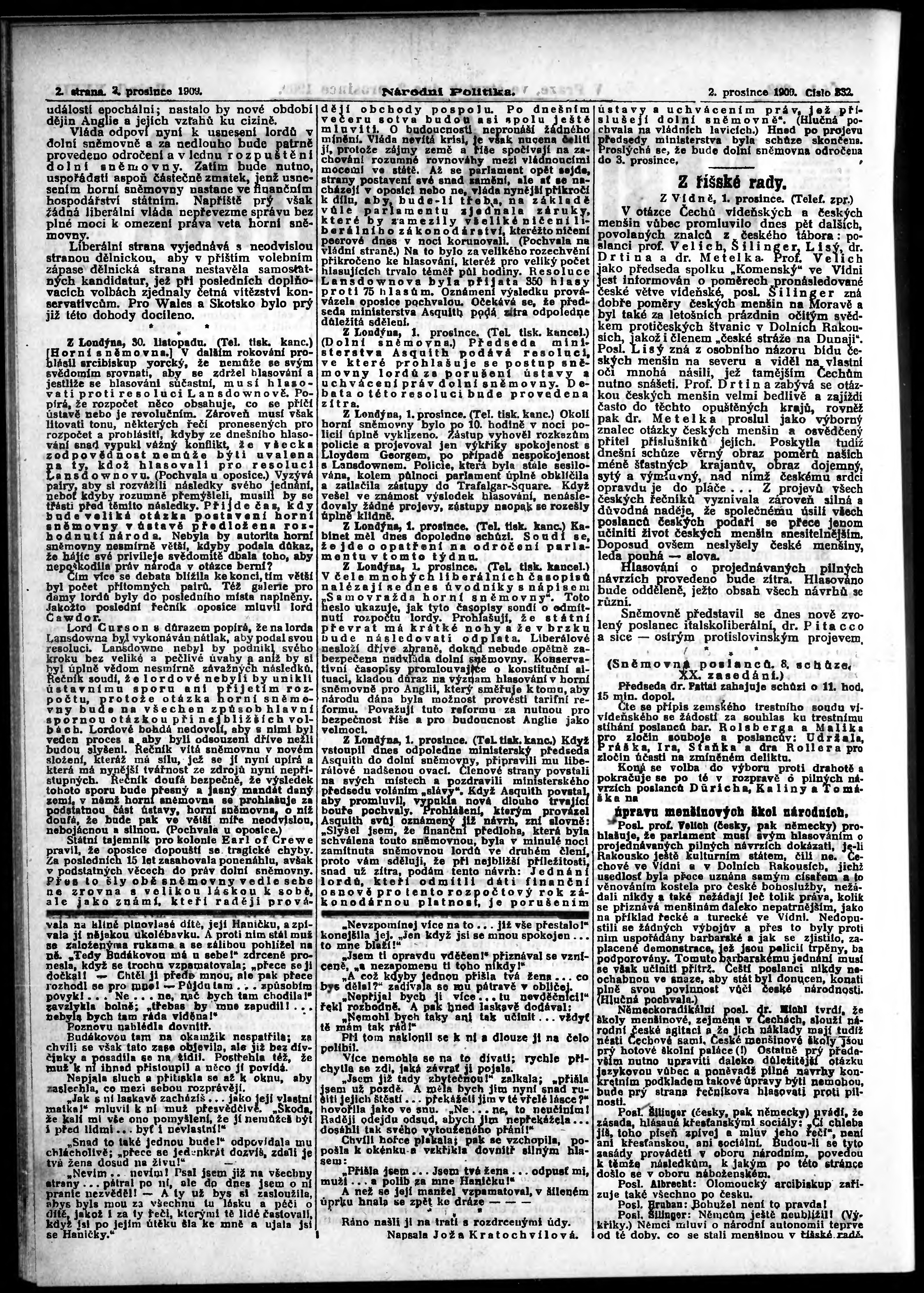 * Datum vydání výtisku: 2.12.1909 Číslo výtisku: 332