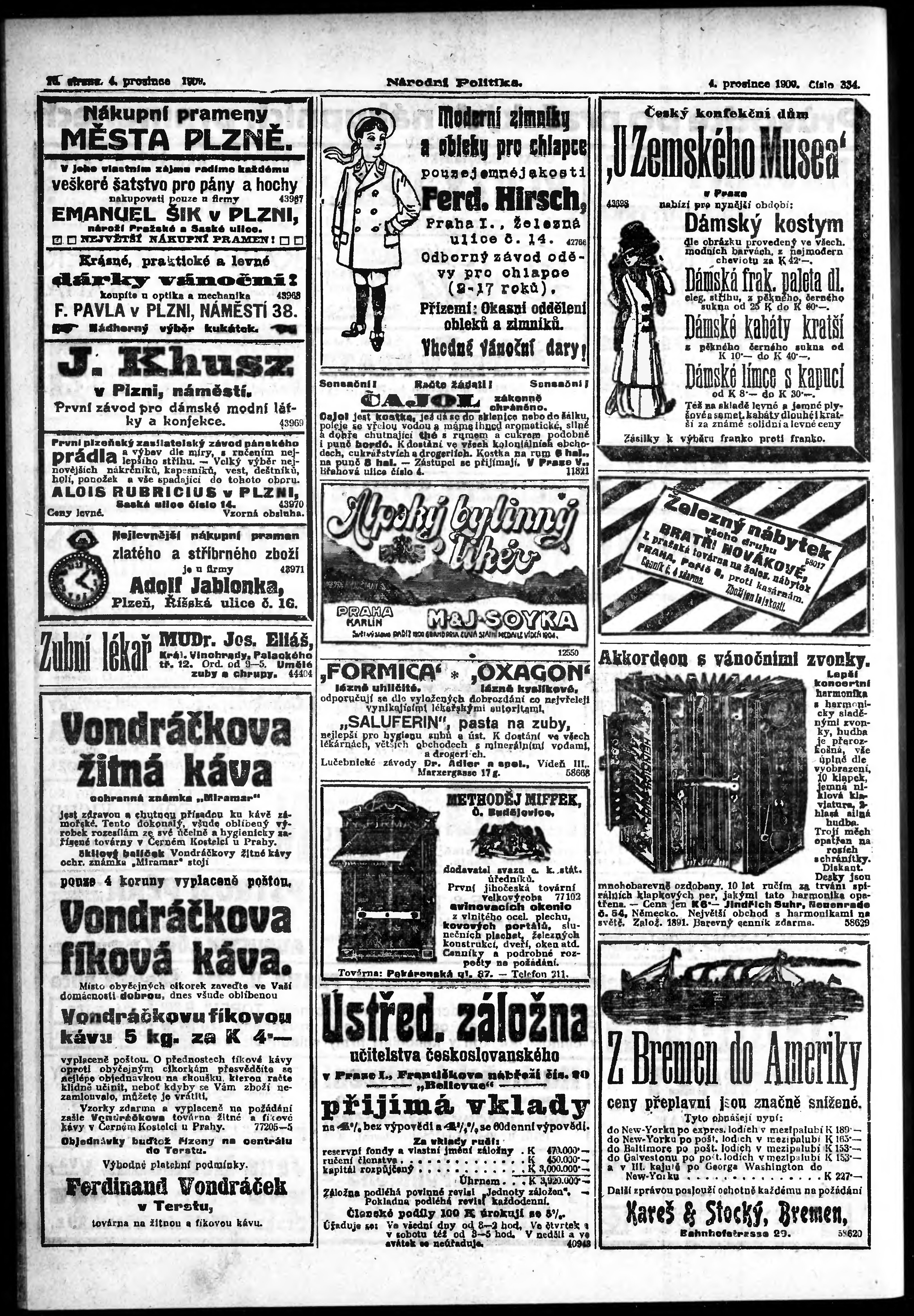 * Datum vydání výtisku: 4.12.1909 Číslo výtisku: 334