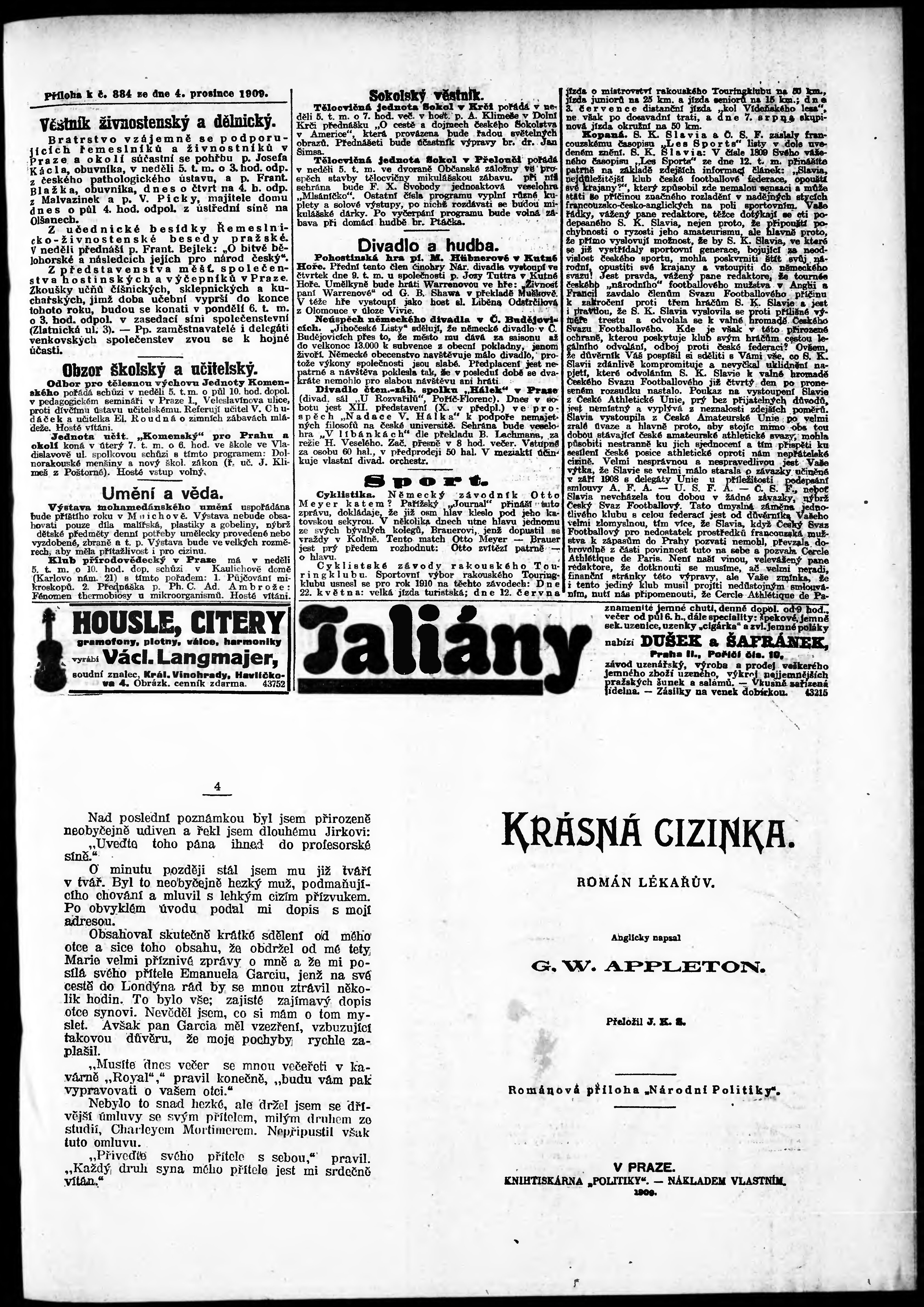 * Datum vydání výtisku: 4.12.1909 Číslo výtisku: 334 Poznámky k výtisku: odpolední vydání;