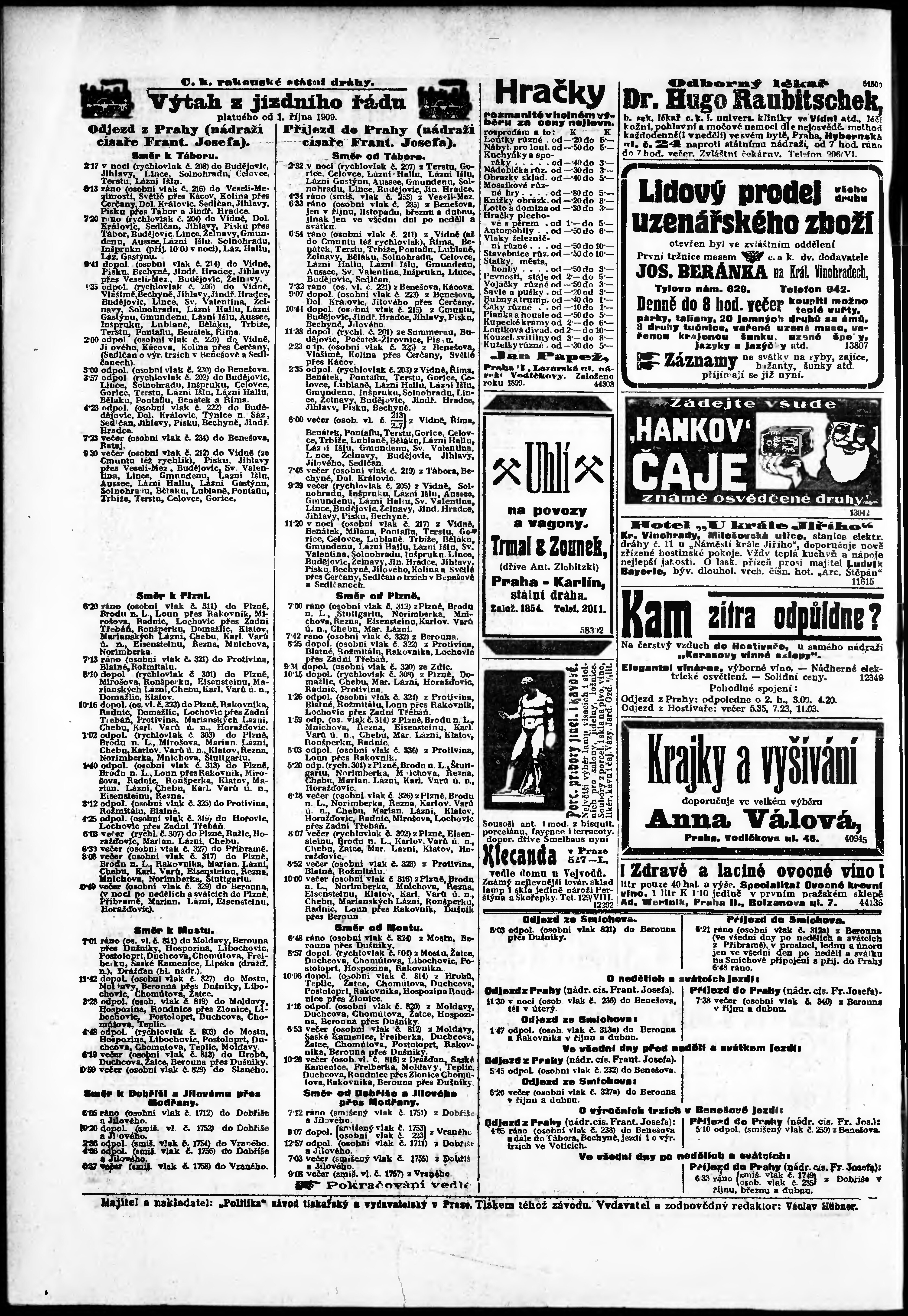 * Datum vydání výtisku: 11.12.1909 Číslo výtisku: 341 Poznámky k výtisku: odpolední vydání;