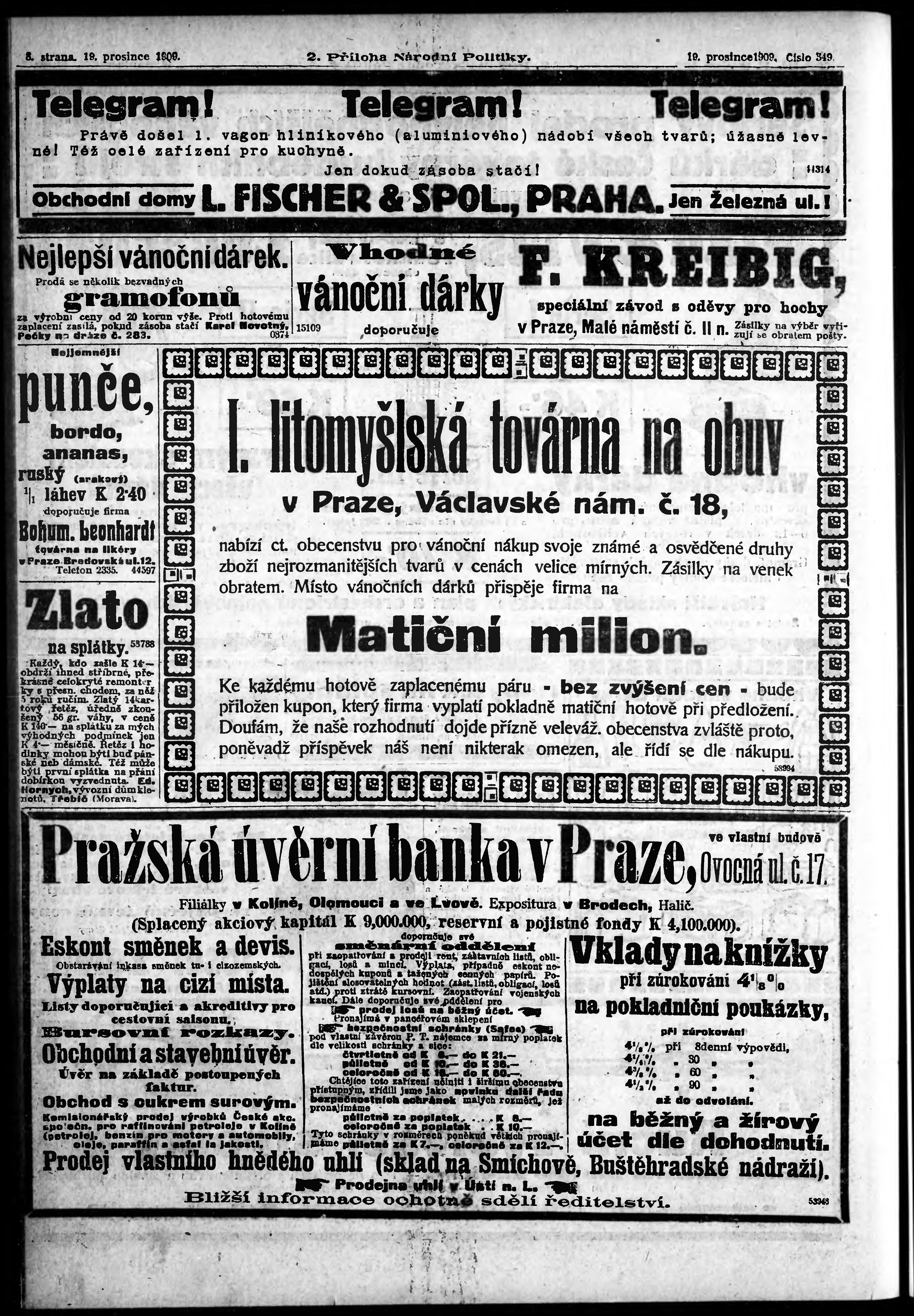 * Datum vydání výtisku: 19.12.1909 Číslo výtisku: 349 Typ výtisku: příloha Poznámky k výtisku: 2. příloha;