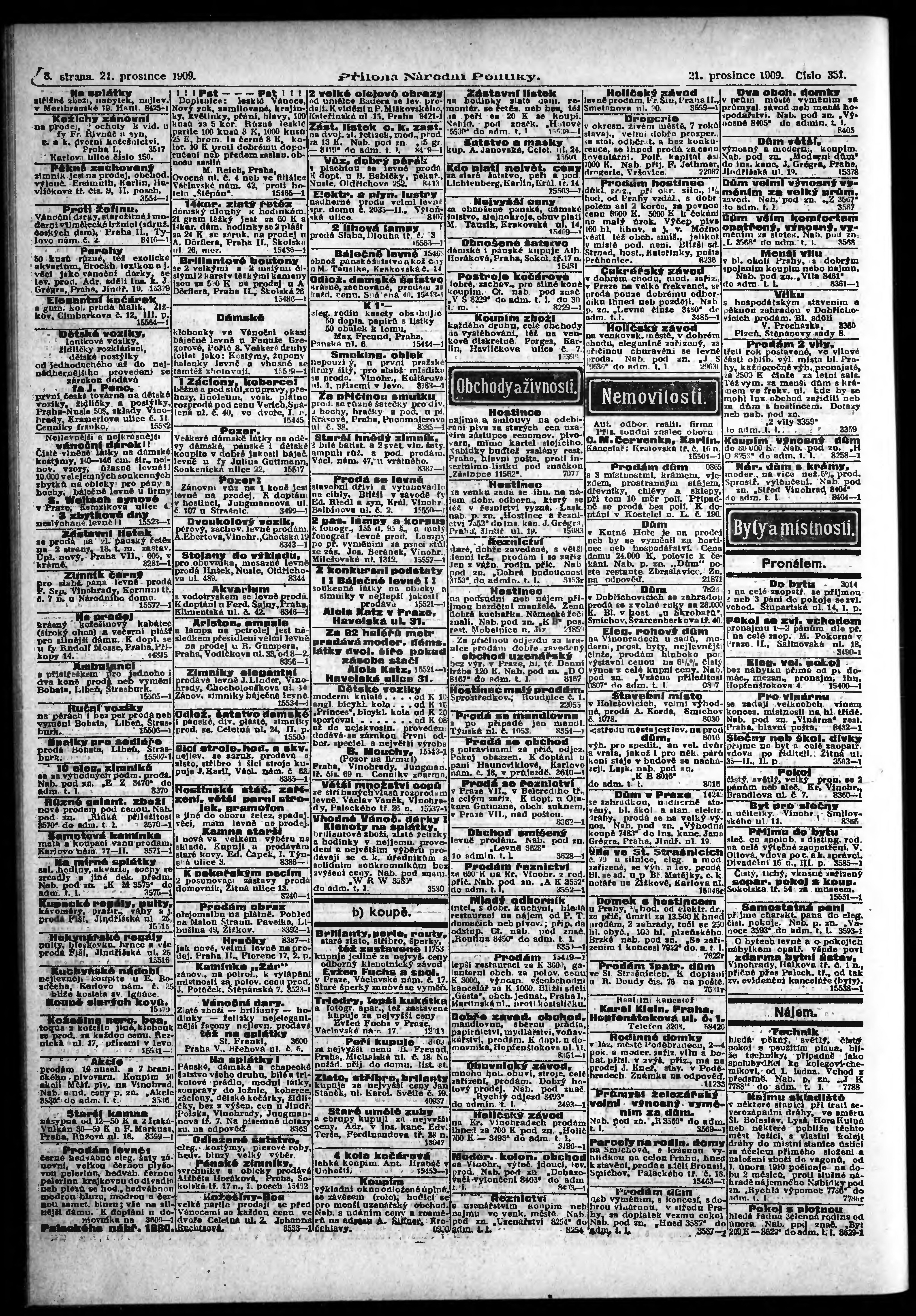 * Datum vydání výtisku: 21.12.1909 Číslo výtisku: 351 Typ výtisku: příloha