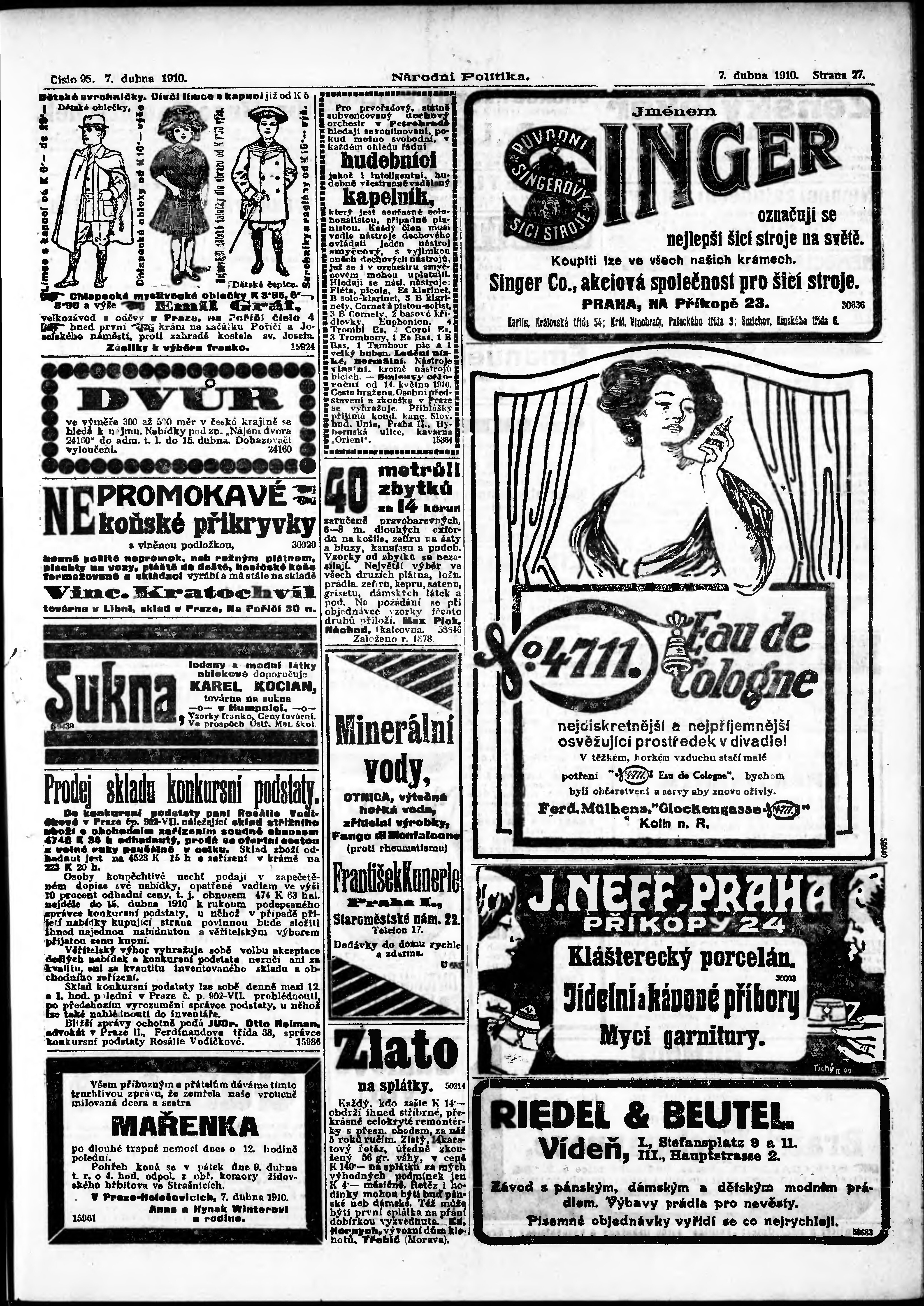 * Datum vydání výtisku: 7.4.1910 Číslo výtisku: 95