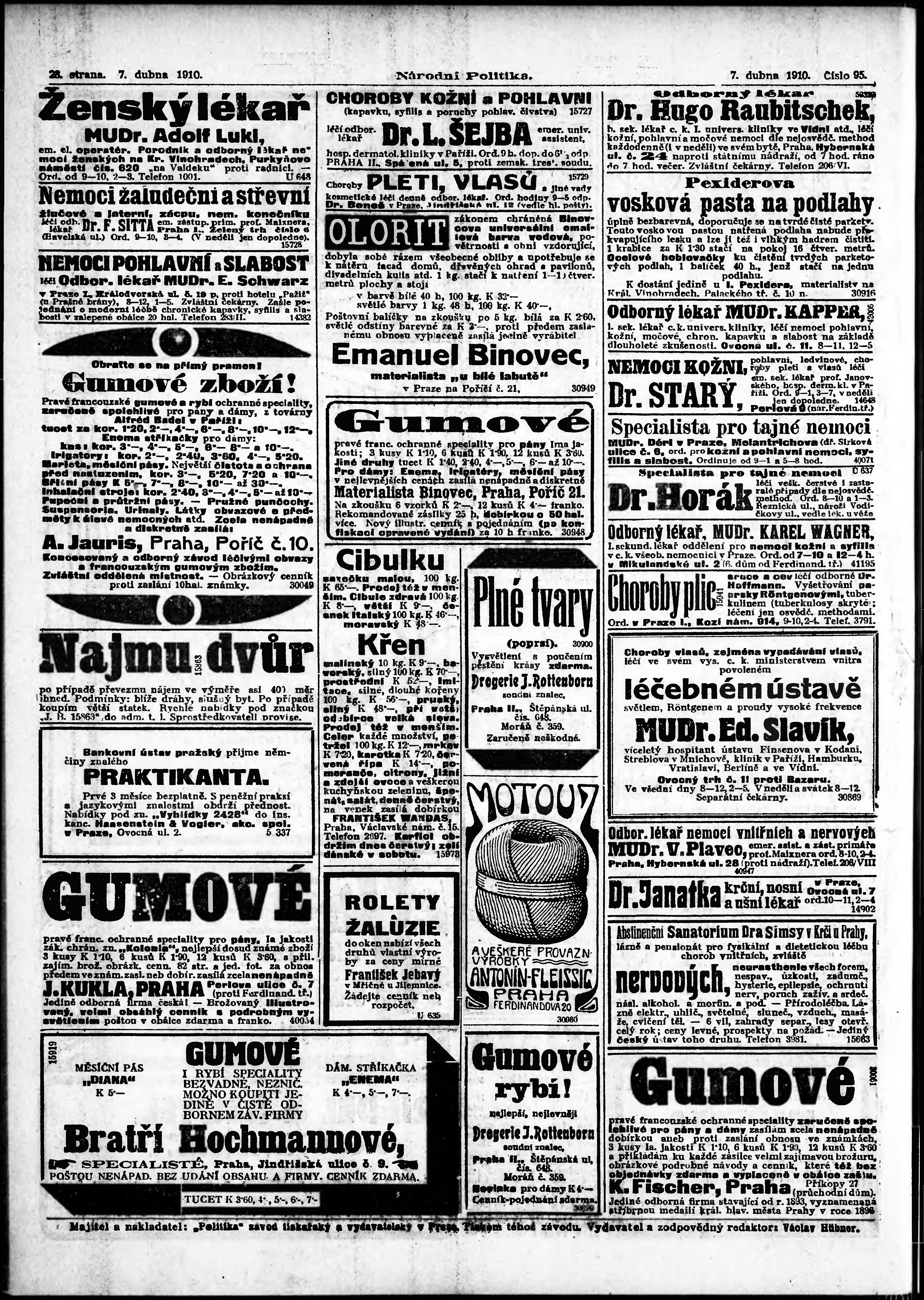 * Datum vydání výtisku: 7.4.1910 Číslo výtisku: 95