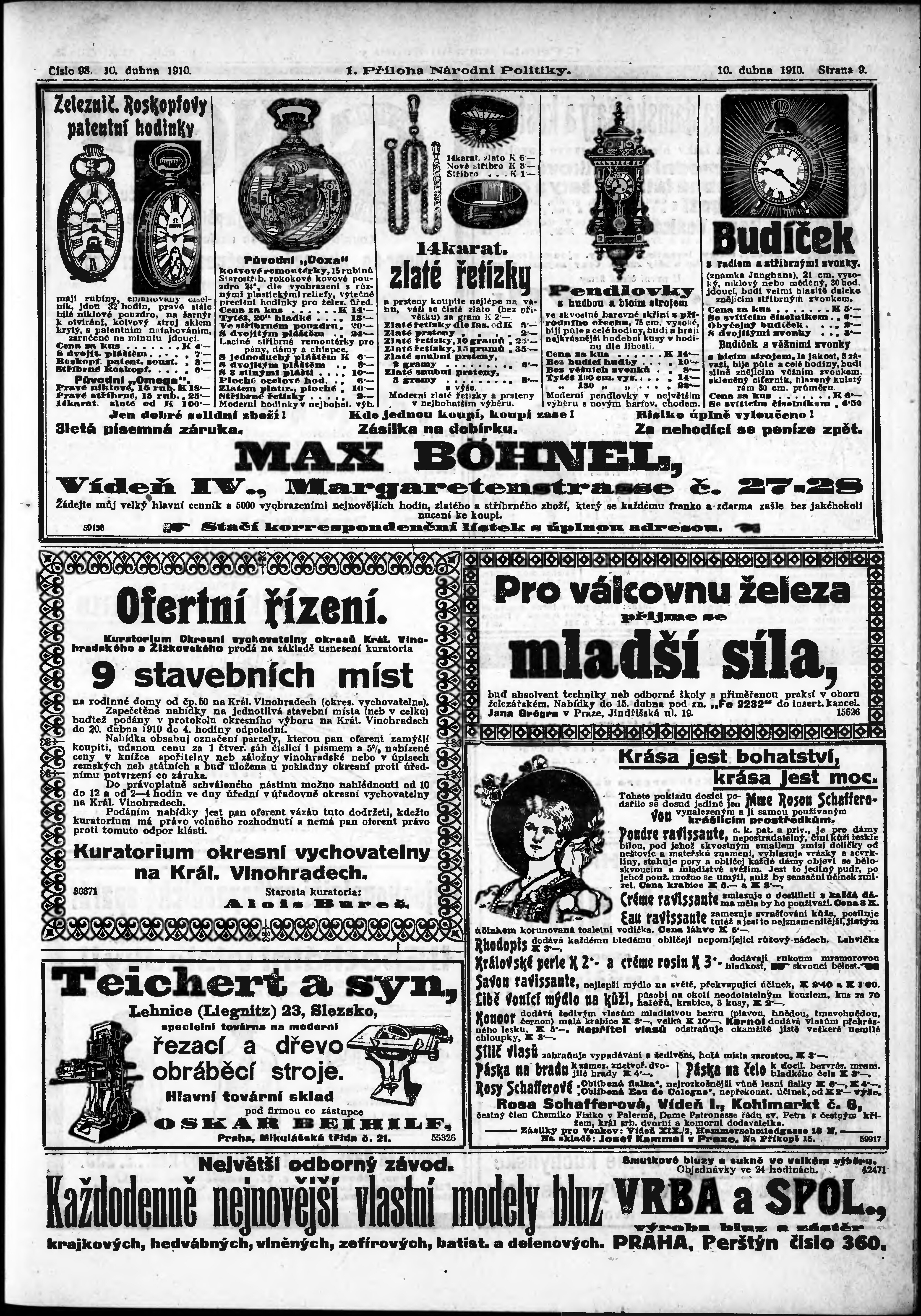 * Datum vydání výtisku: 10.4.1910 Číslo výtisku: 98 Typ výtisku: příloha Poznámky k výtisku: 1. příloha;