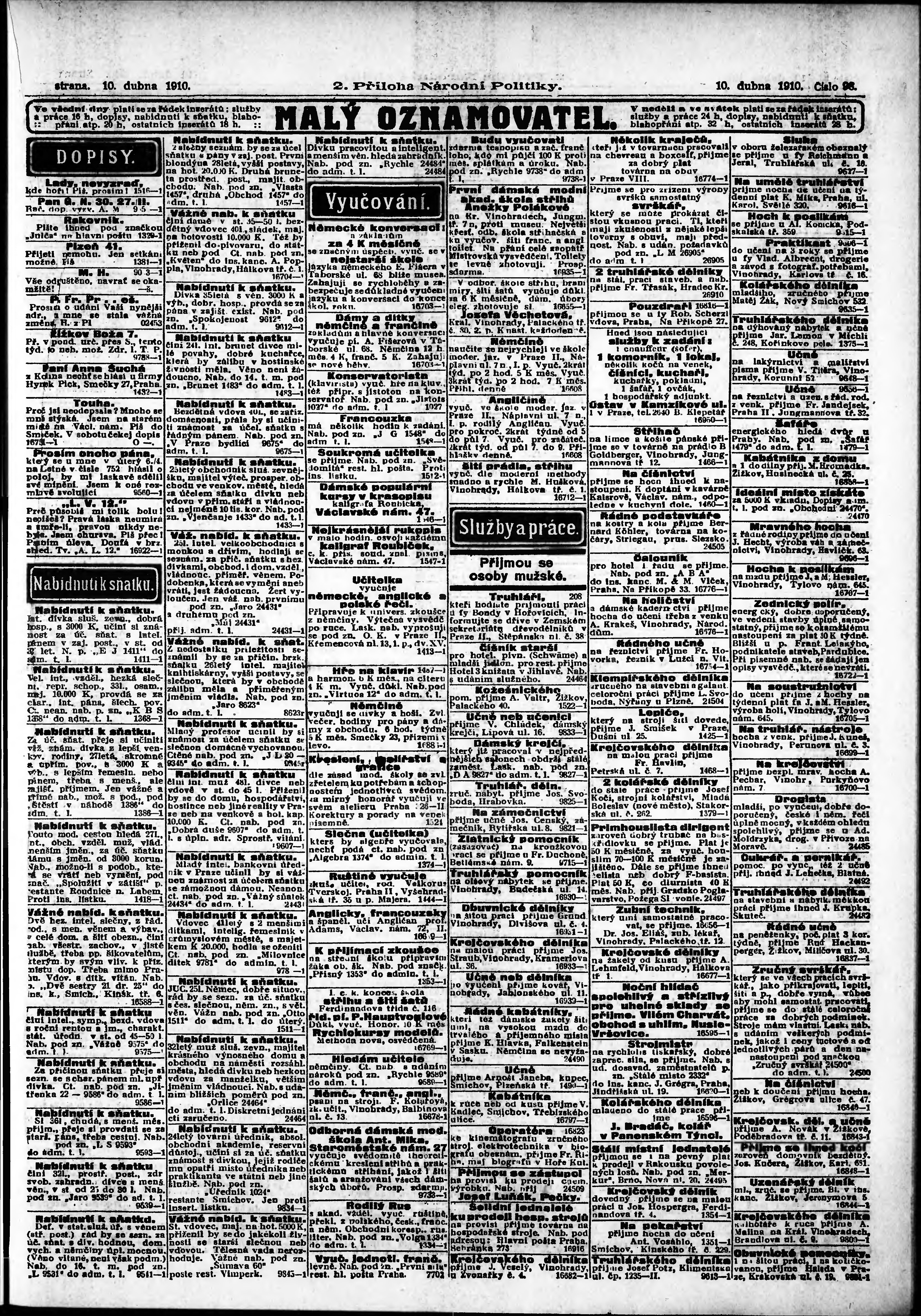 * Datum vydání výtisku: 10.4.1910 Číslo výtisku: 98 Typ výtisku: příloha Poznámky k výtisku: 2. příloha;