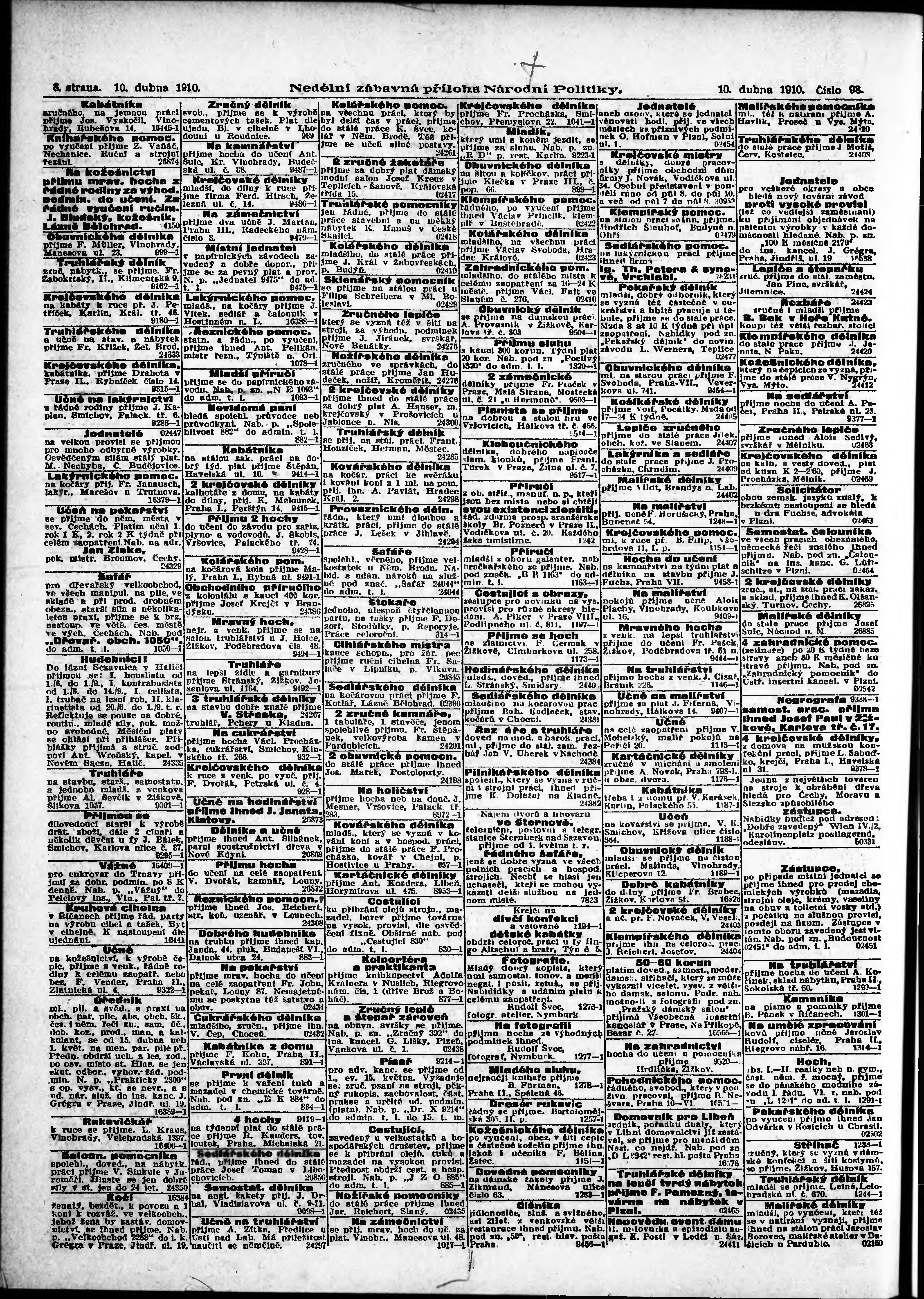 * Datum vydání výtisku: 10.4.1910 Číslo výtisku: 98 Typ výtisku: příloha