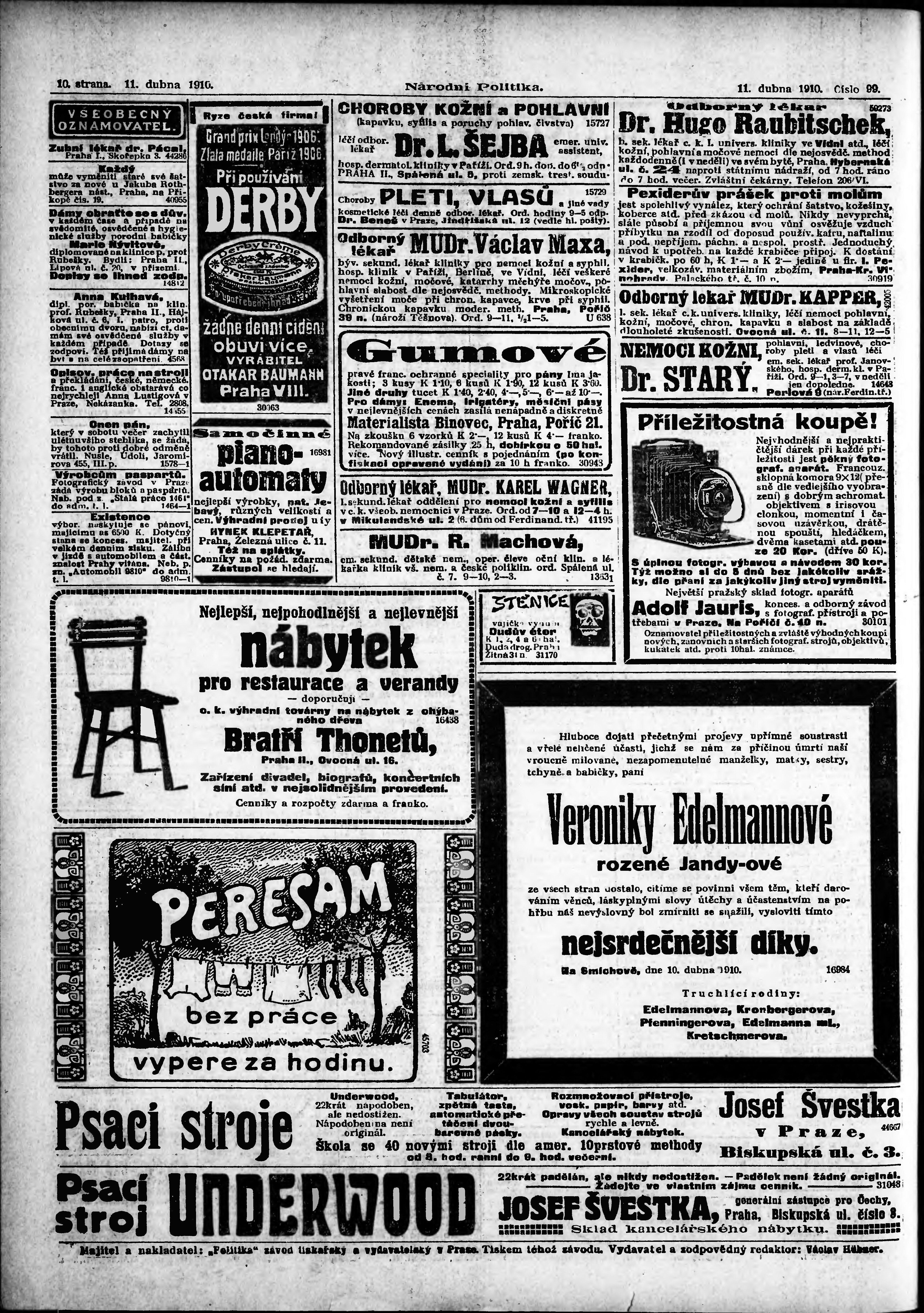 * Datum vydání výtisku: 11.4.1910 Číslo výtisku: 99
