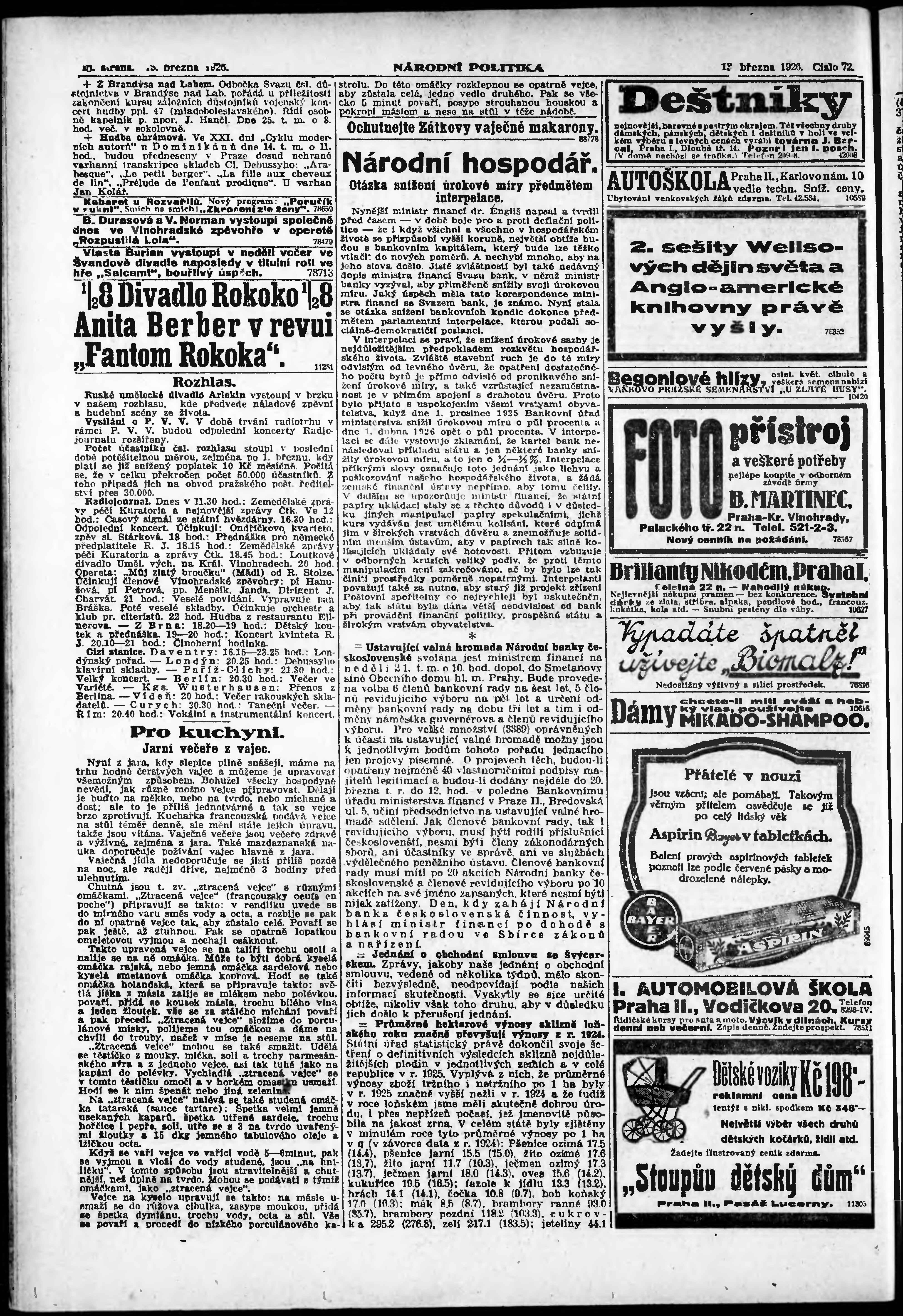 * Datum vydání výtisku: 13.3.1926 Číslo výtisku: 72 Poznámky k výtisku: ranní vydání; vydání pro Prahu;
