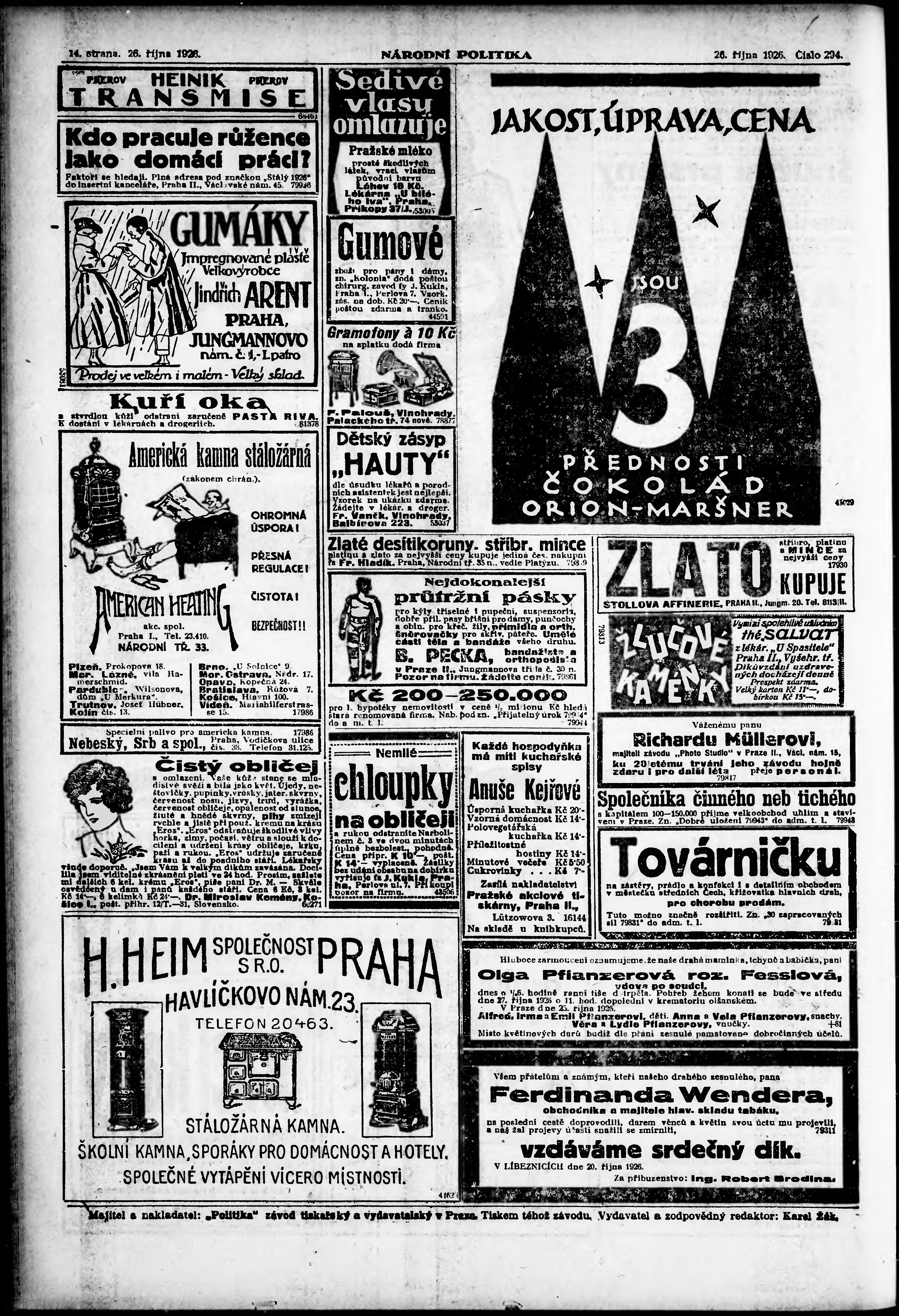 ranní vydání; vydání pro Prahu;